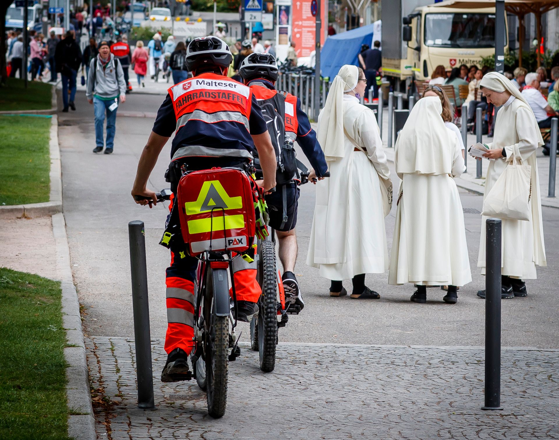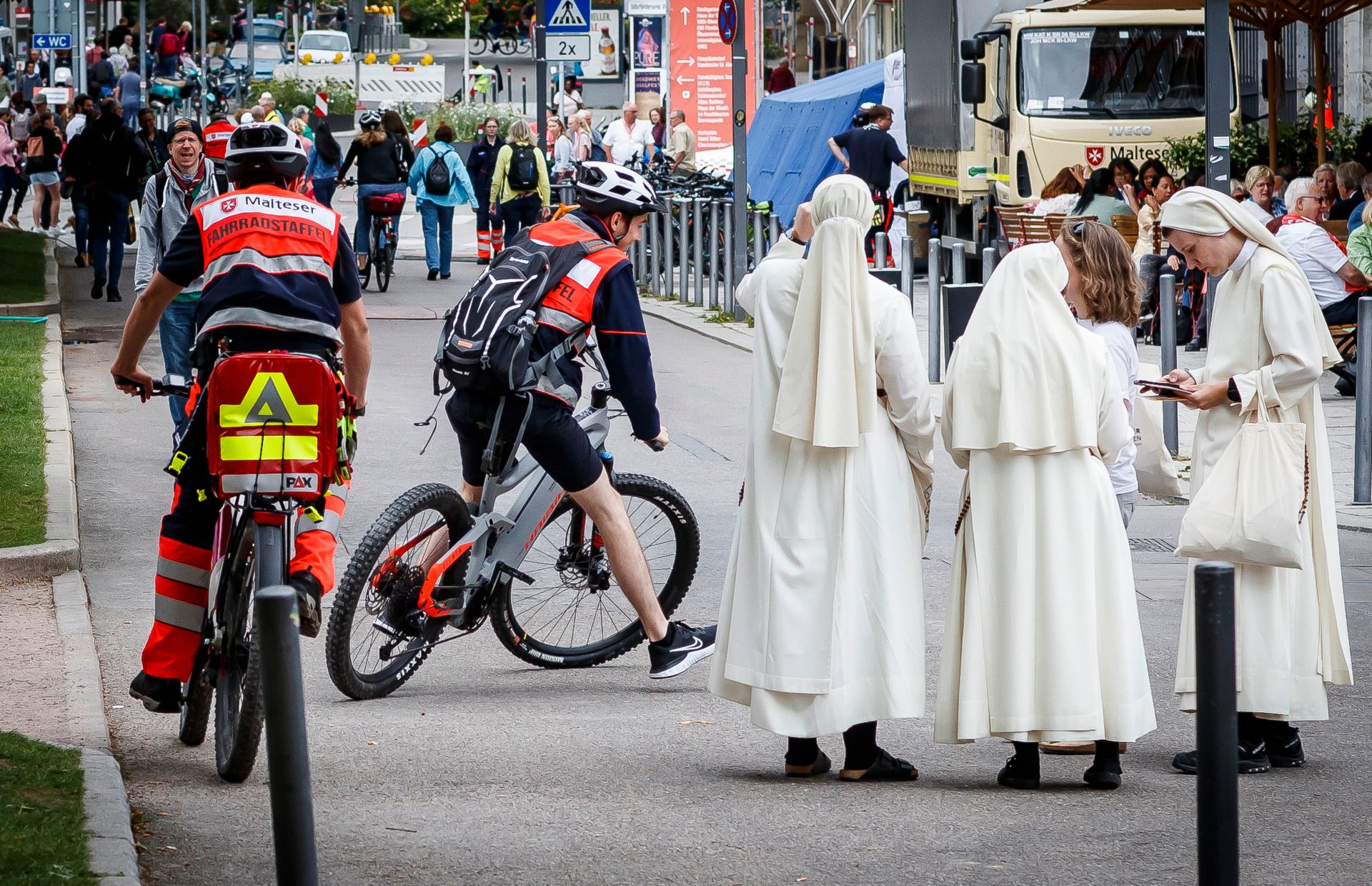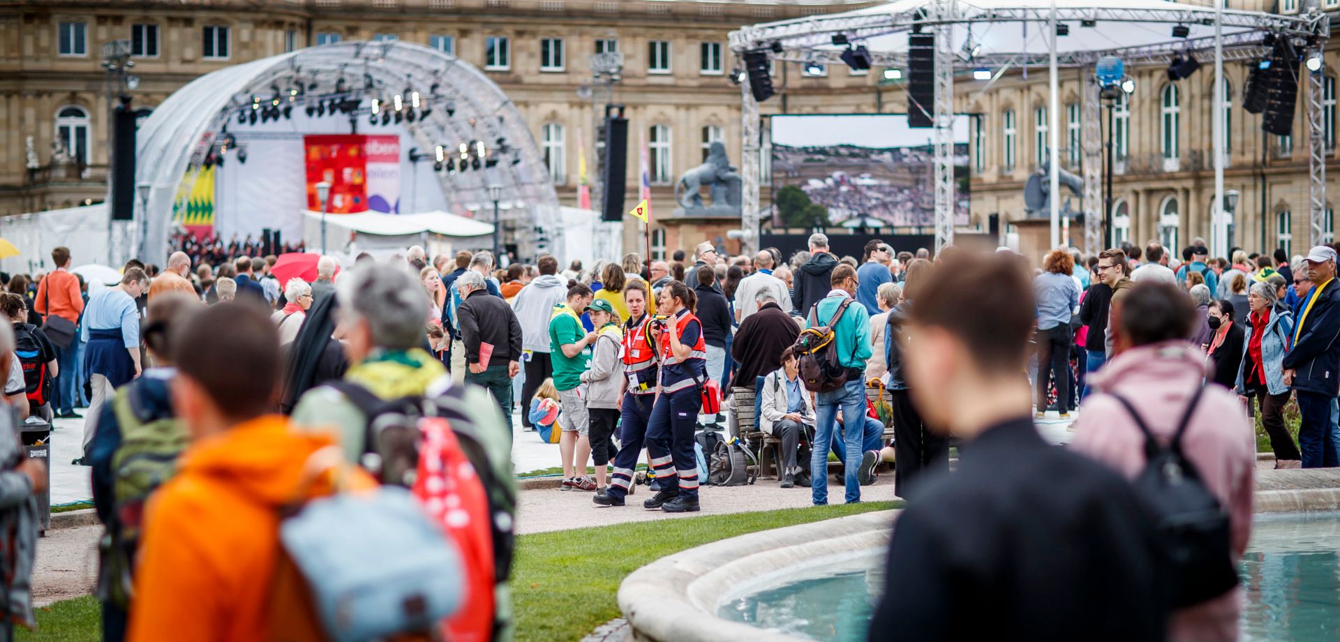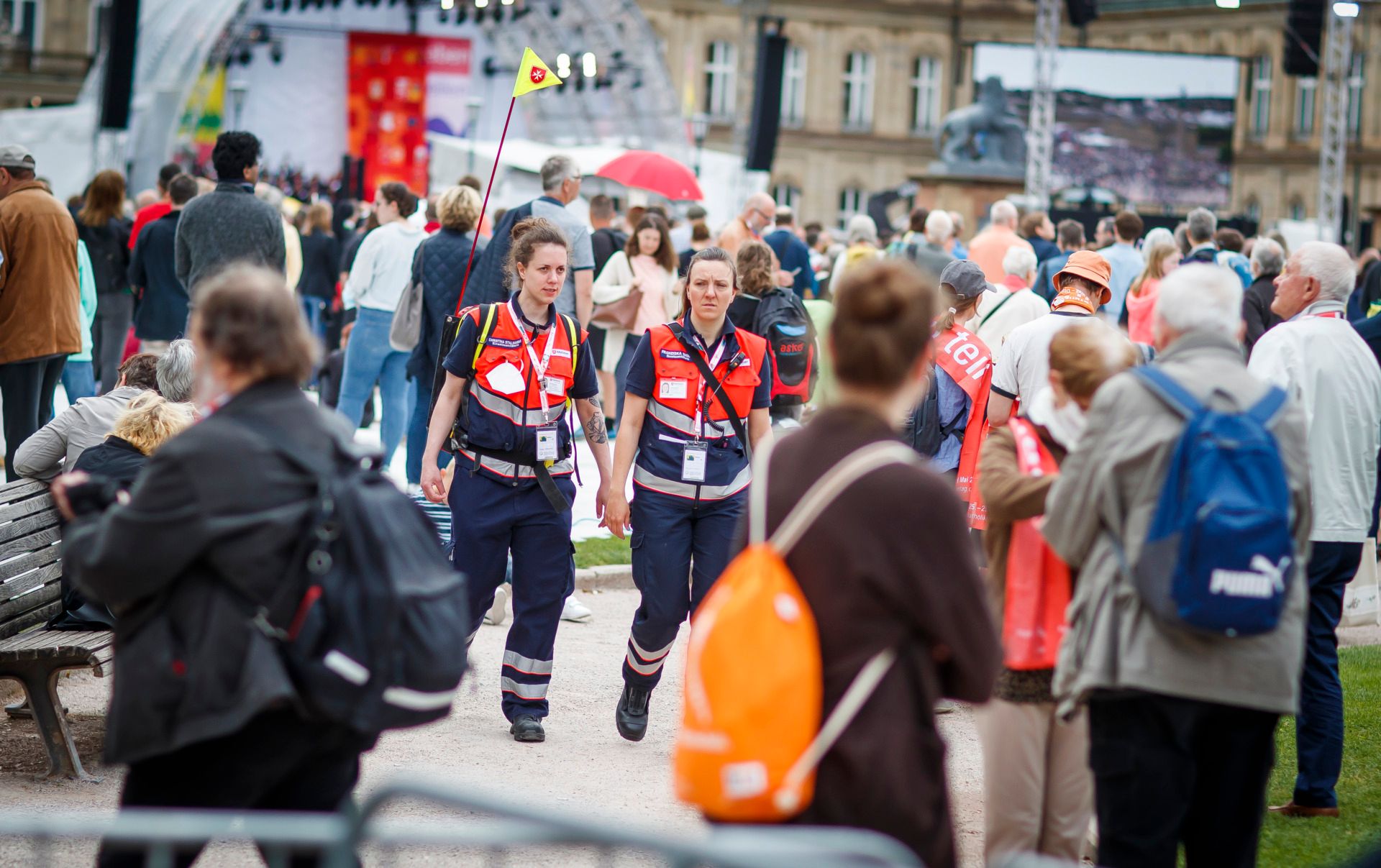 In und rund um die Stuttgarter Innenstadt verteilt leisten die Malteser sanitätsdienstliche Versorgung, helfen aber auch gerne bei alltäglichen Problemen und Fragen der Gäste auf dem Katholikentag.