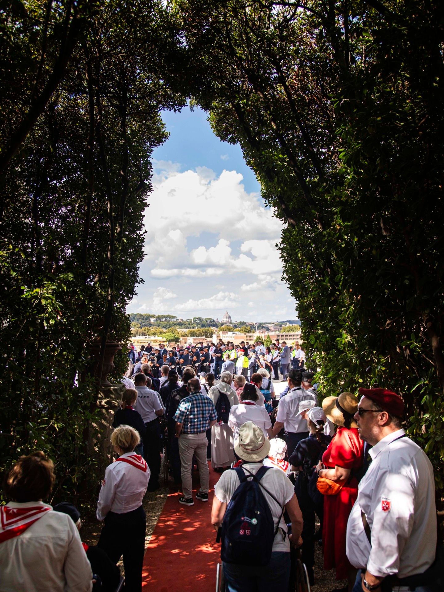 Nach der Papstaudienz auf dem Petersplatz geht es hinauf zum Aventin, einem der sieben Hügel Roms. Dort werden die Pilgerinnen und Pilger im Garten der Villa Malta des Malteserordens zum Picknick einkehren. Da darf natürlich der berühmte Blick durchs Schlüsselloch auf die Kuppel des Petersdoms nicht fehlen.