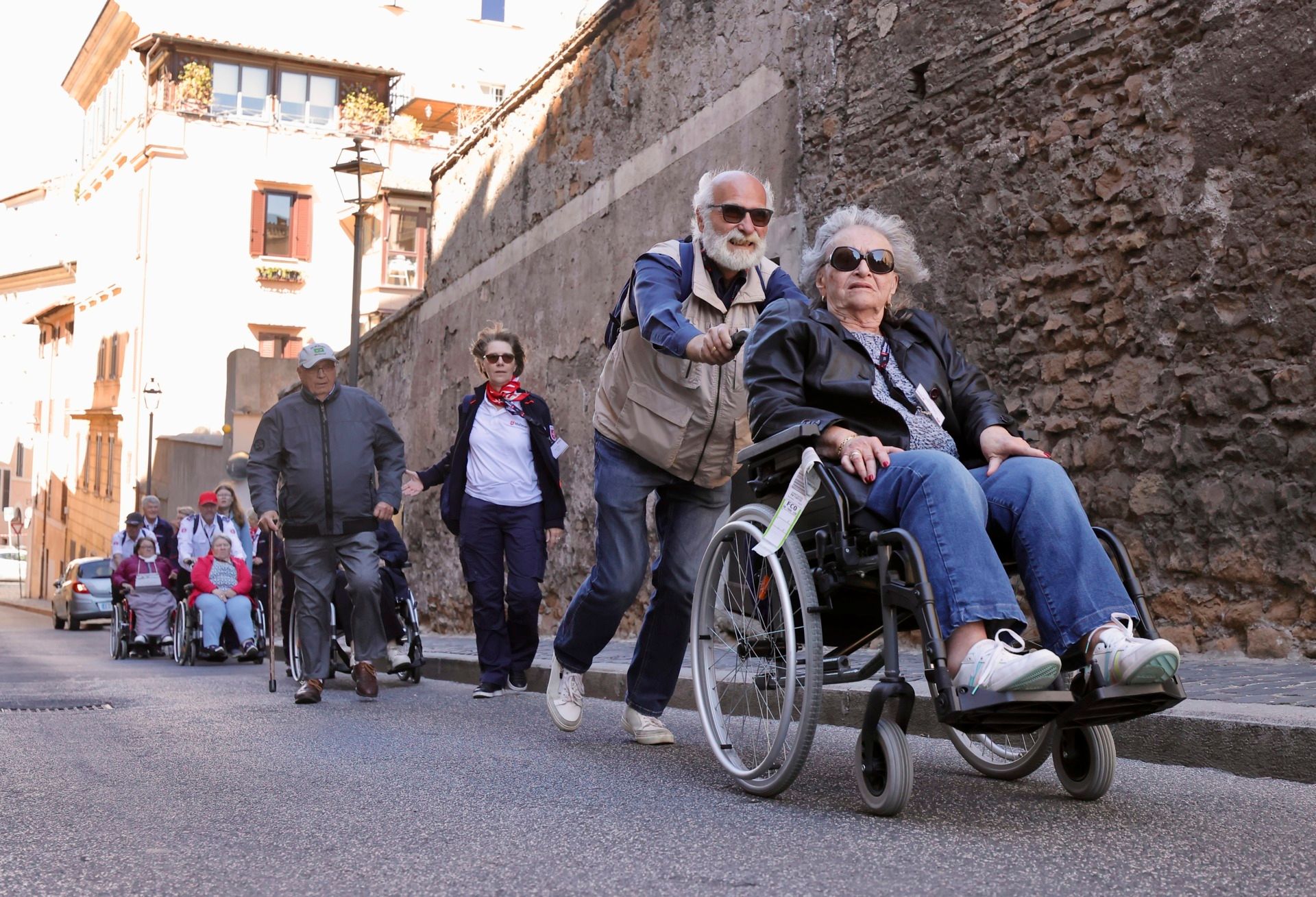 Am fünften Tag erobern viele Pilgergruppen zu Fuß und auf vier Rollstuhl-Rädern erneut das Stadtzentrum Roms, während es andere bei dem schönen Wetter an den Strand bei Ostia zieht.