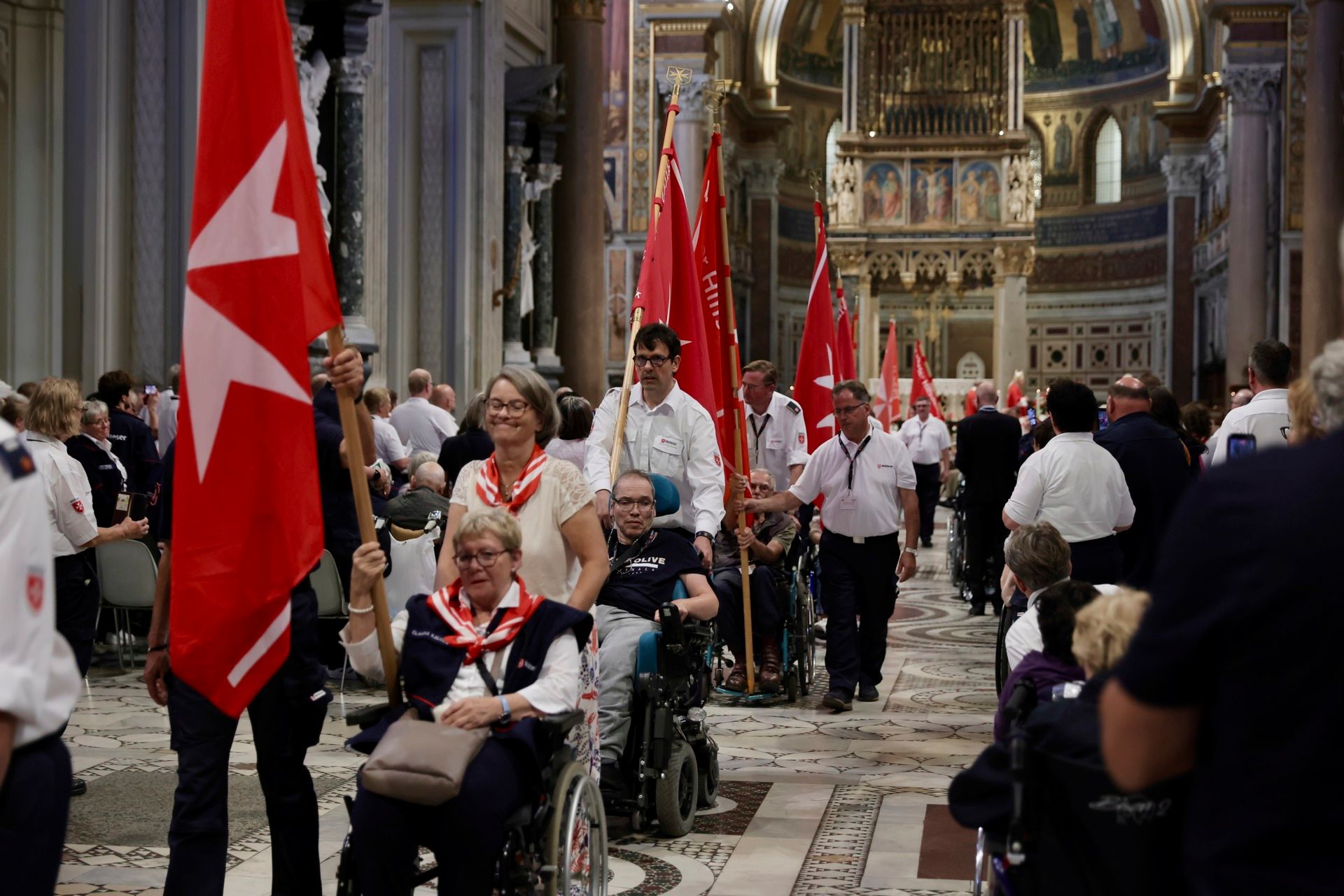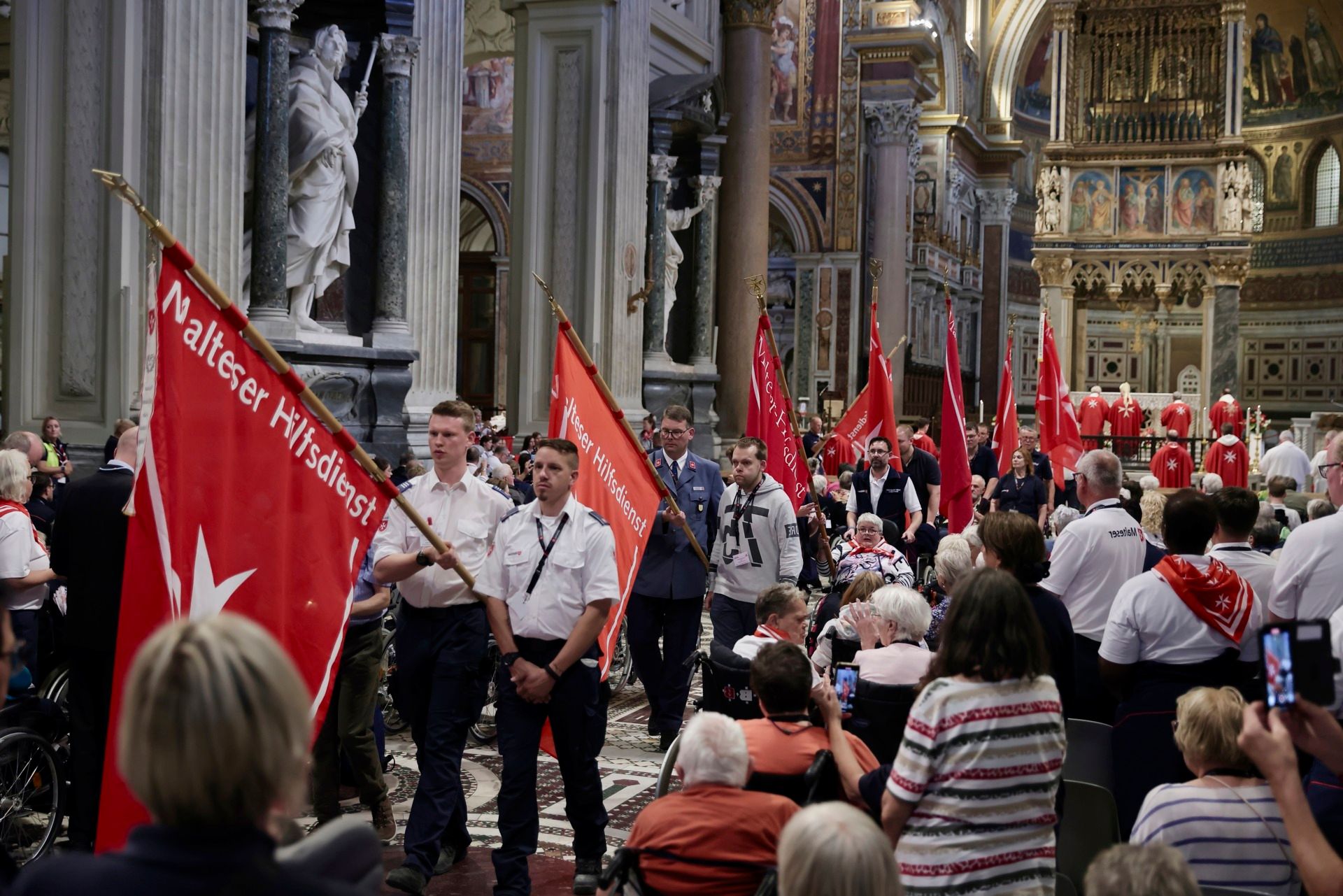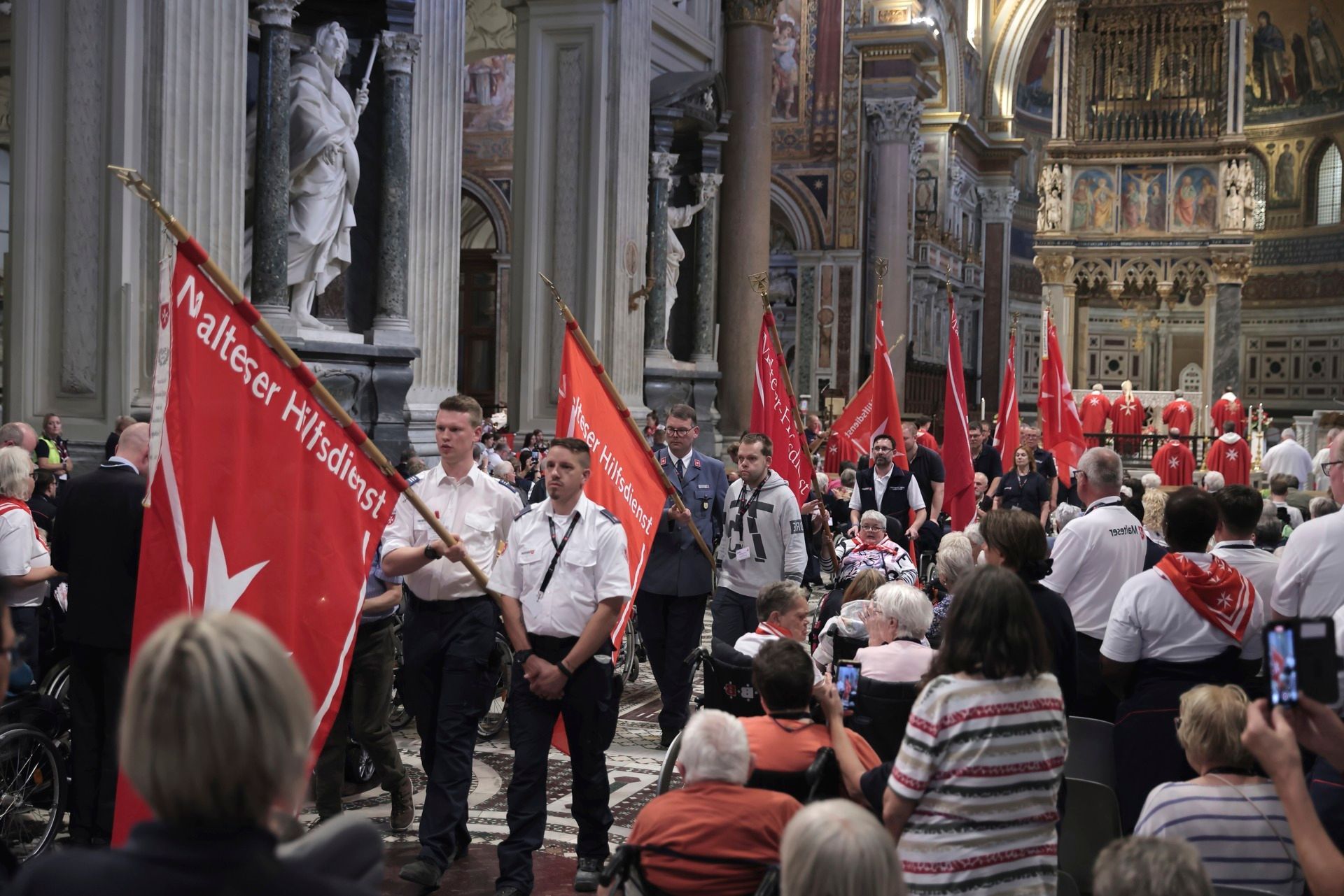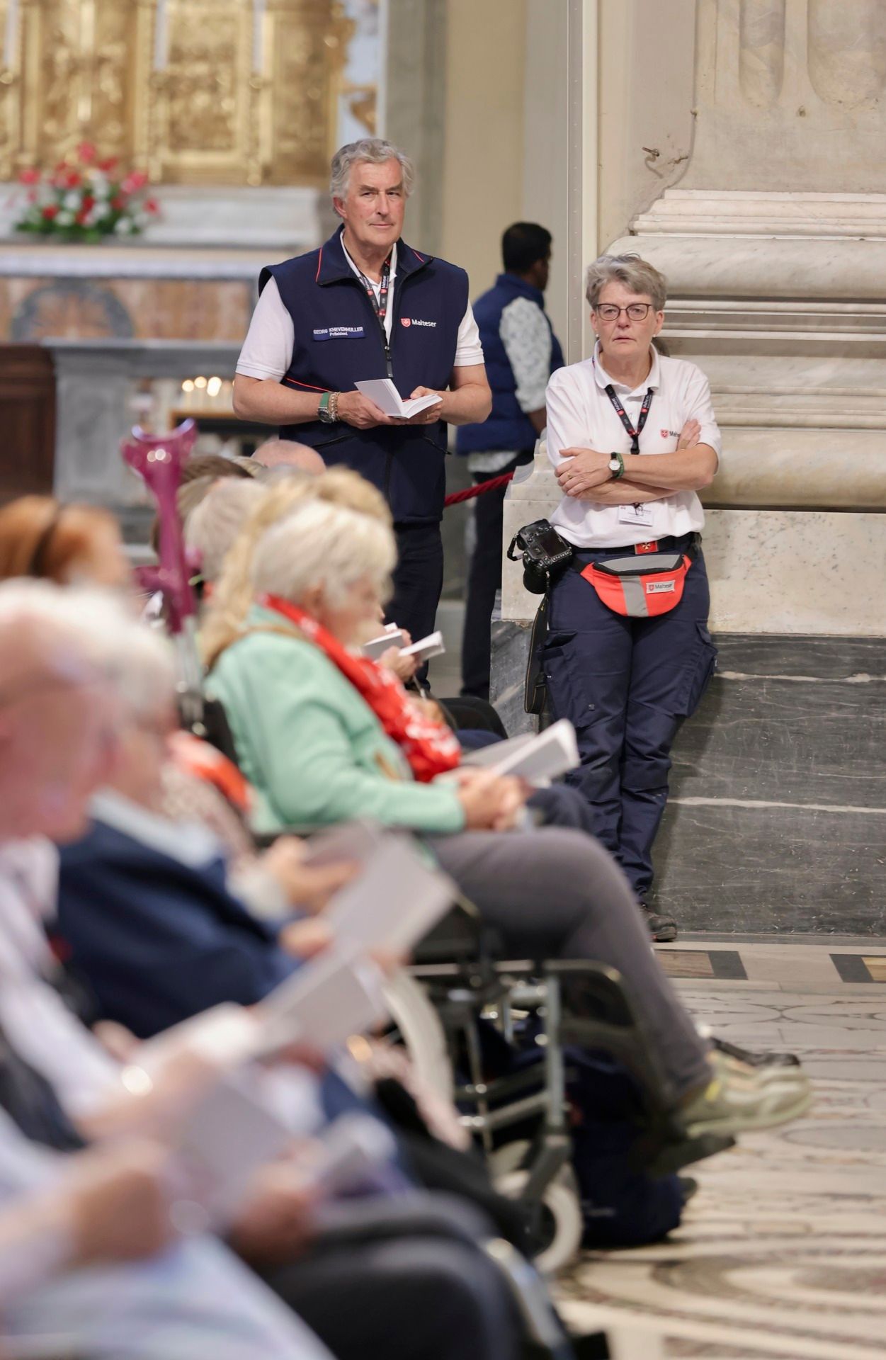 Nach den individuellen Ausflügen am Vormittag treffen die Pilgergruppen in der Basilica San Giovanni in Laterano zur Messe mit Krankensalbung wieder aufeinander. Die Basilika im Lateran, dem offiziellen Sitz der Päpste, ist die älteste der vier Erzbasiliken in der Ewigen Stadt.