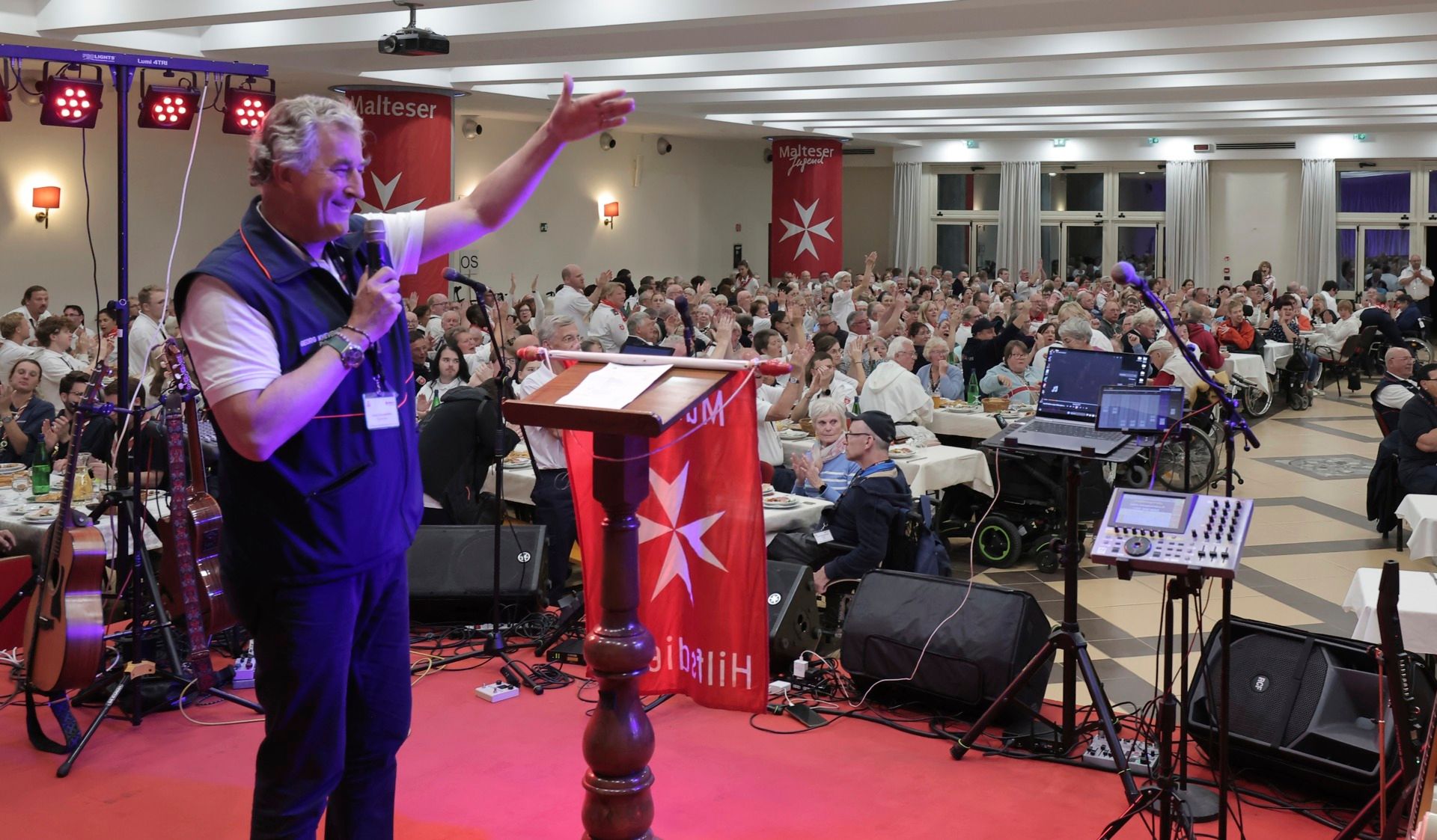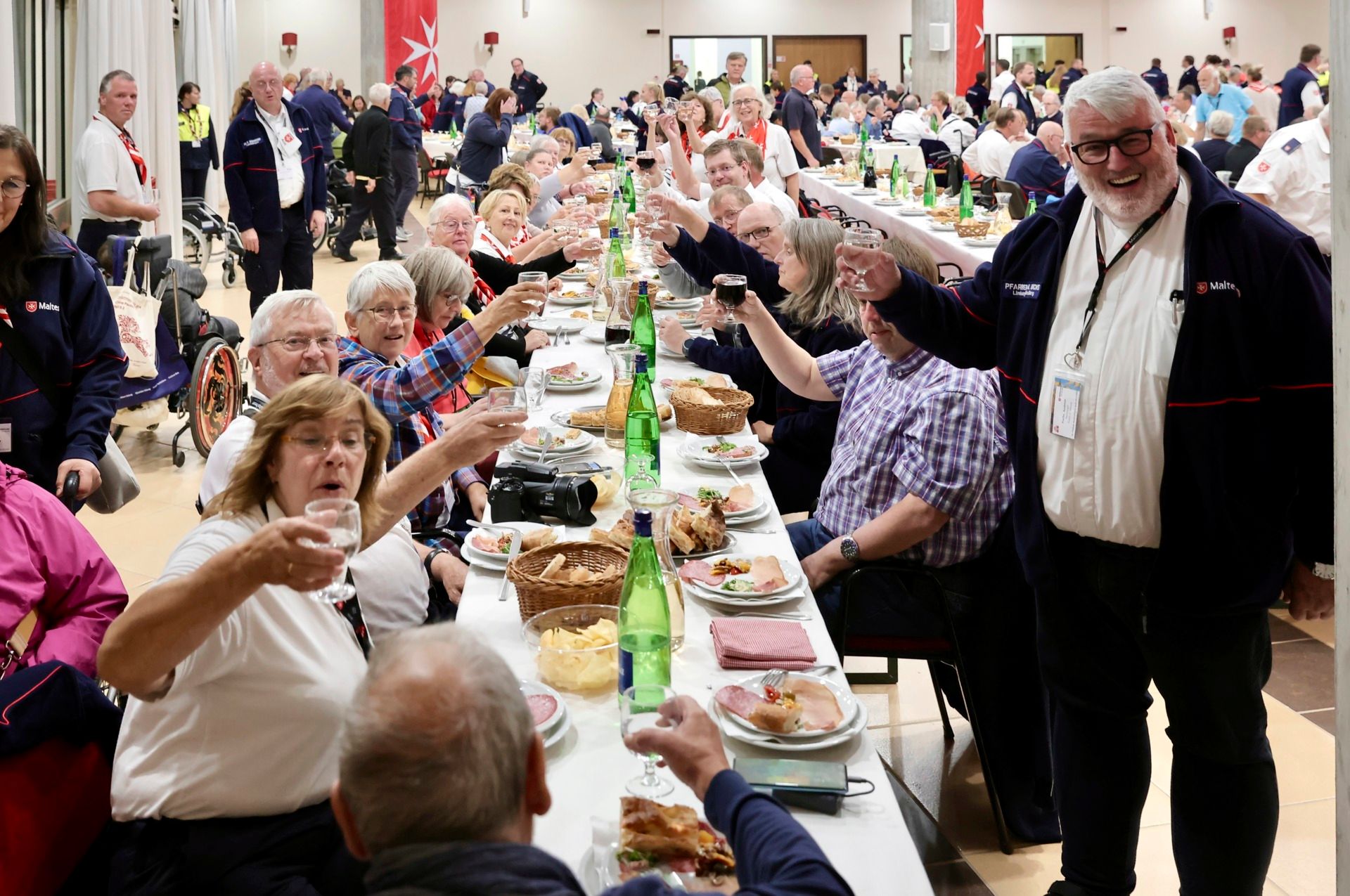 Die Festa im Fraterna Domus ist traditionell der unterhaltsame Abschluss jeder großen Malteser Romwallfahrt - mit gutem Essen, Ehrungen für die großartigen Helferinnen und Helfer, Musik und dem legendären Rollstuhl-Tanz.