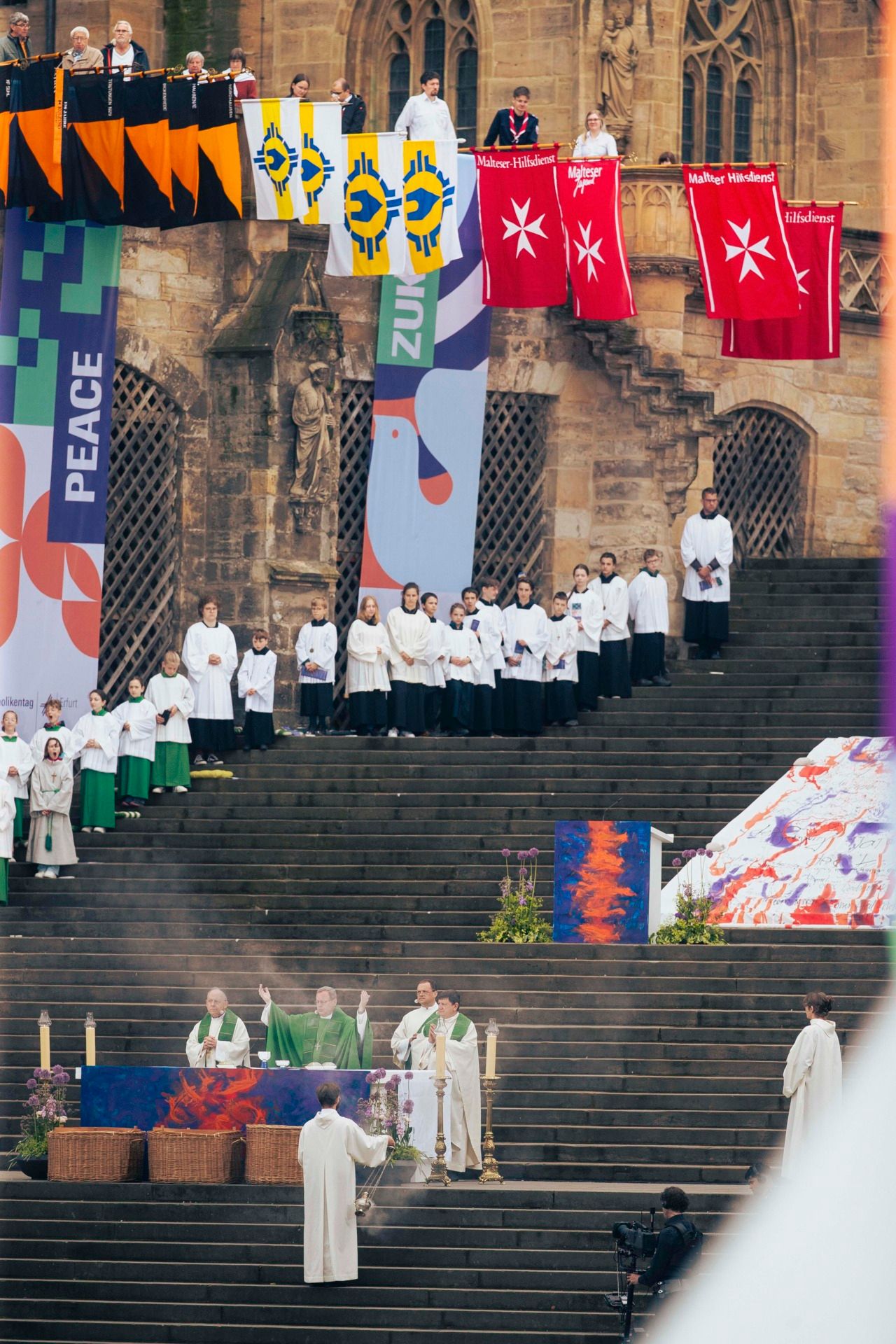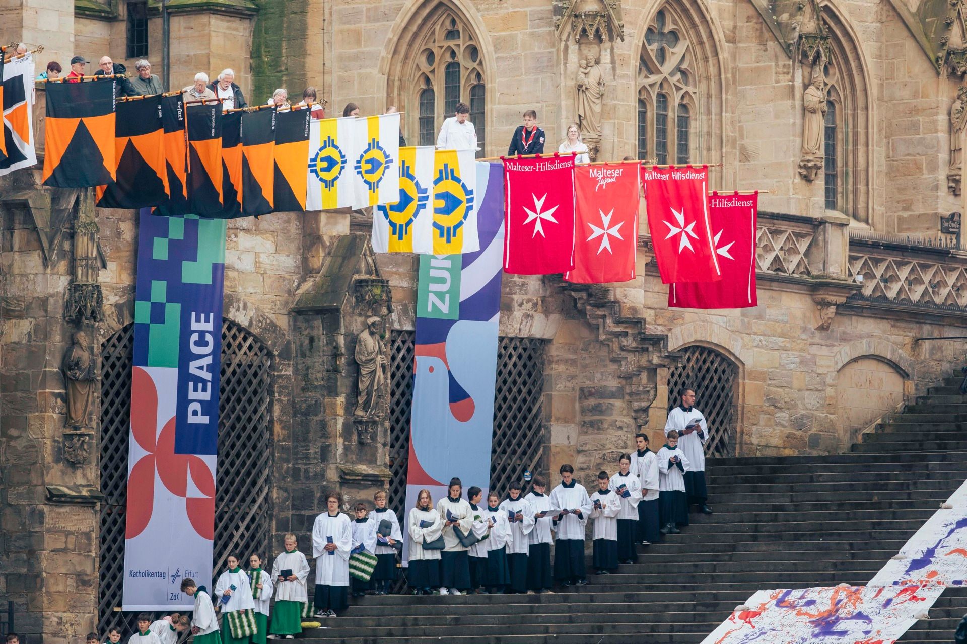 Ein prägendes Merkmal der Katholikentage sind die vielfältigen Formen der gefeierten Gottesdienste. Unter anderem feiern die Malteser gemeinsam mit der Caritas am Samstagmittag einen Gottesdienst im Dom mit dem Erfurter Bischof Neymeyr und seinem Dresdner Amtskollegen und Malteser Bundesseelsorger Timmerewers.