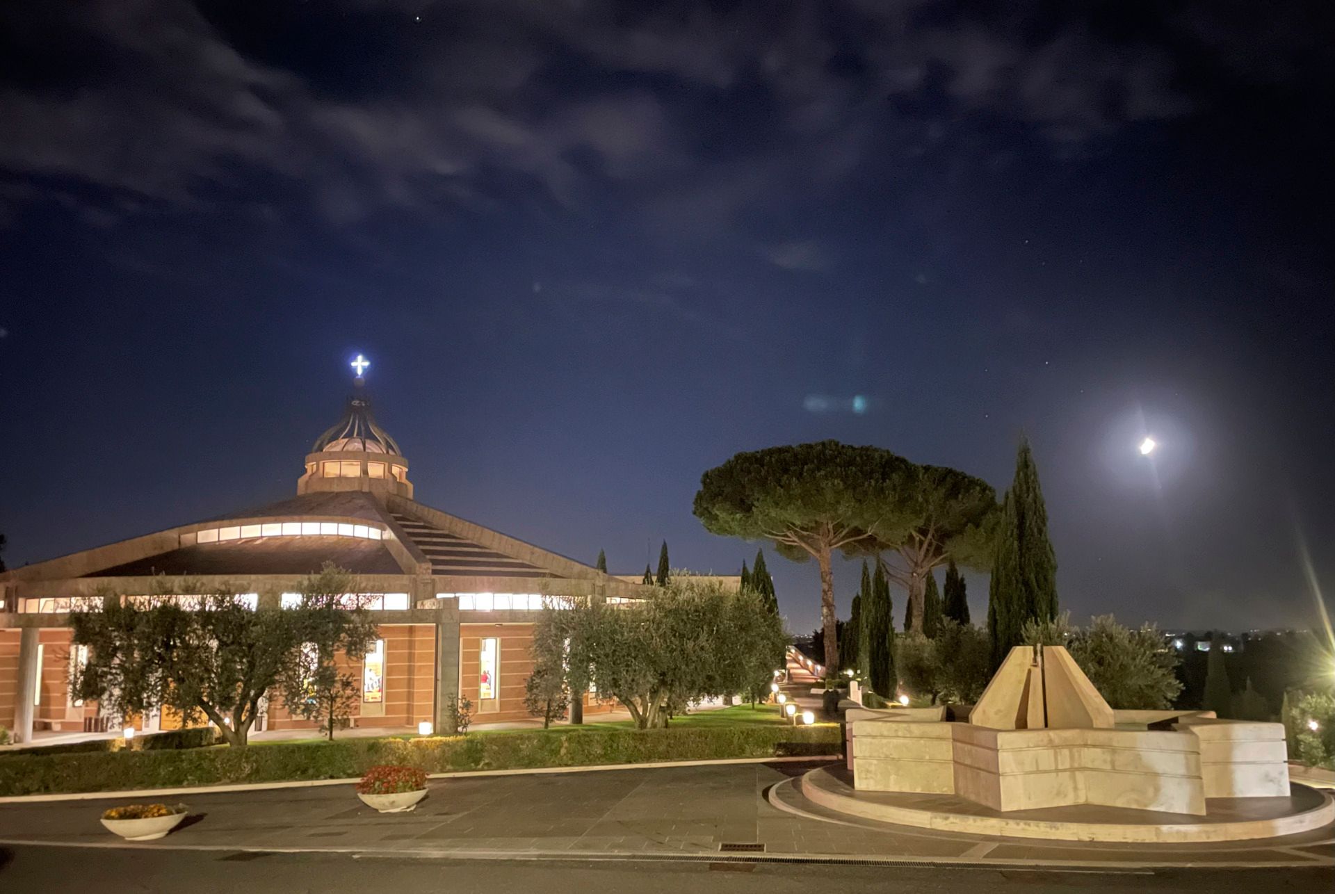 Im Laufe des Nachmittags erreichen die Teilnehmerinnen und Teilnehmer, die mit speziellen Reisebusen oder dem Flugzeug aus allen Teilen Deutschlands angereist sind, das Fraterna Domus, ein Pilgerhotel vor den Toren Roms.
