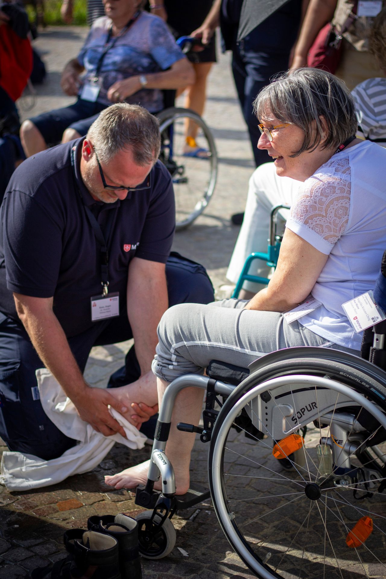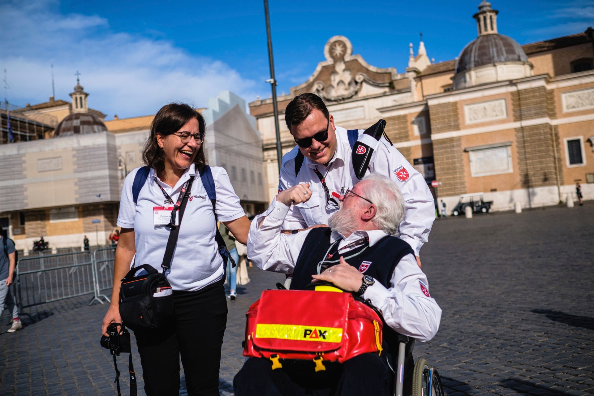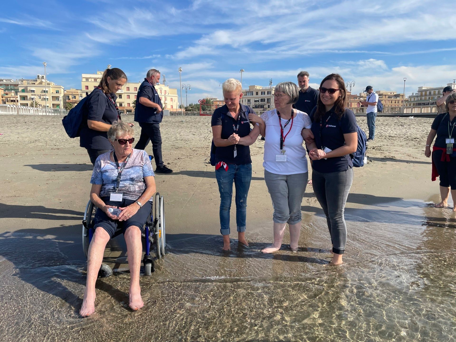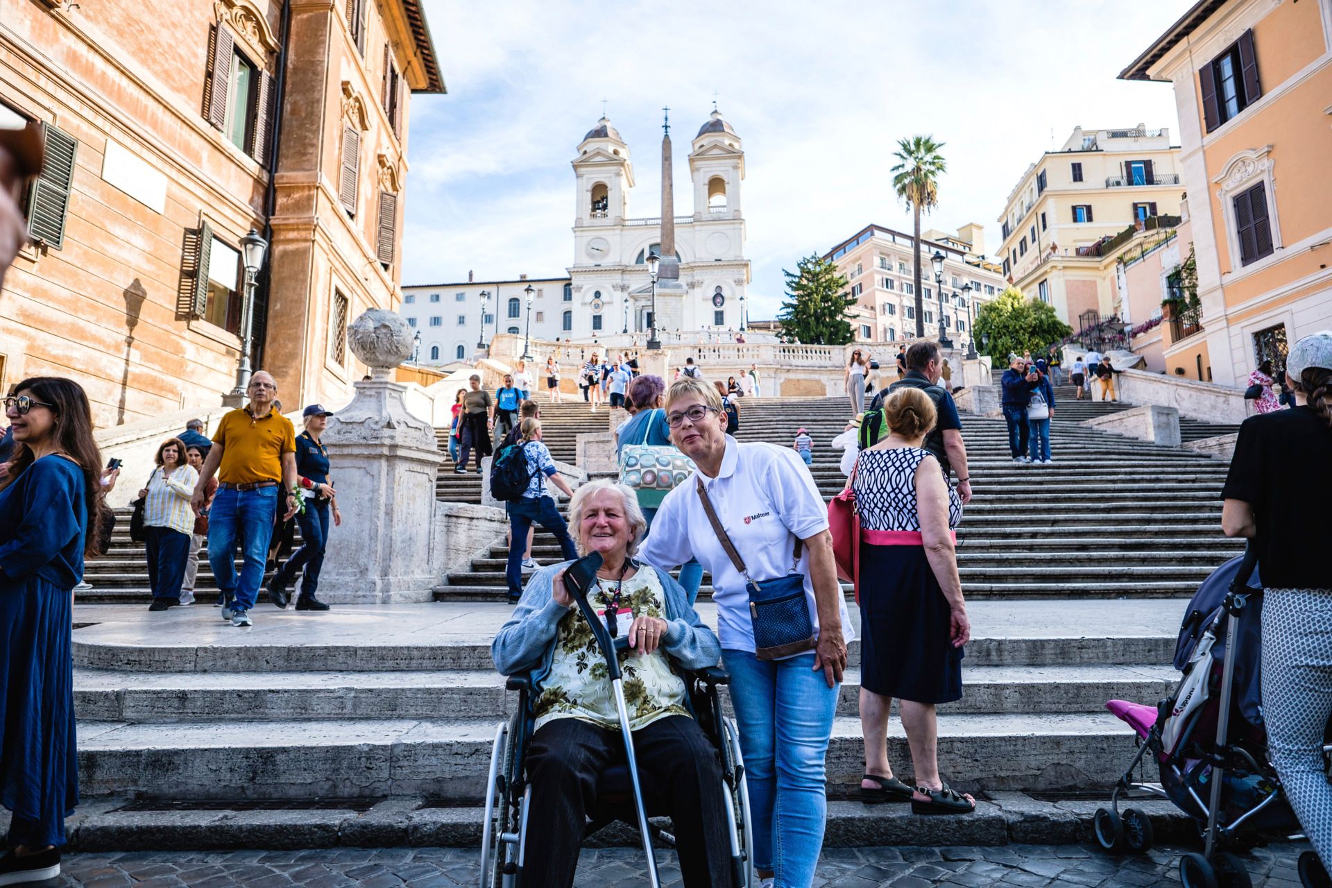 Am fünften Tag erobern die meisten Pilger-Gruppen zu Fuß und auf vier Rollstuhl-Rädern das historische Stadtzentrum Roms, während es andere bei dem schönen Wetter an den Strand bei Ostia zieht.