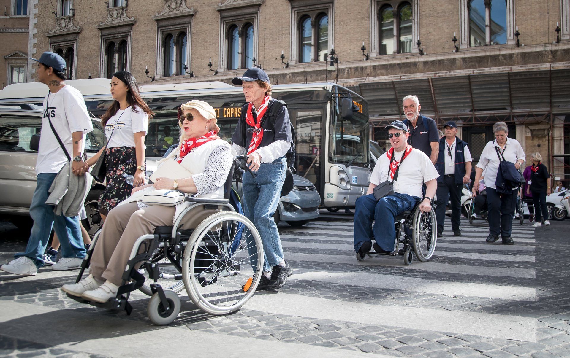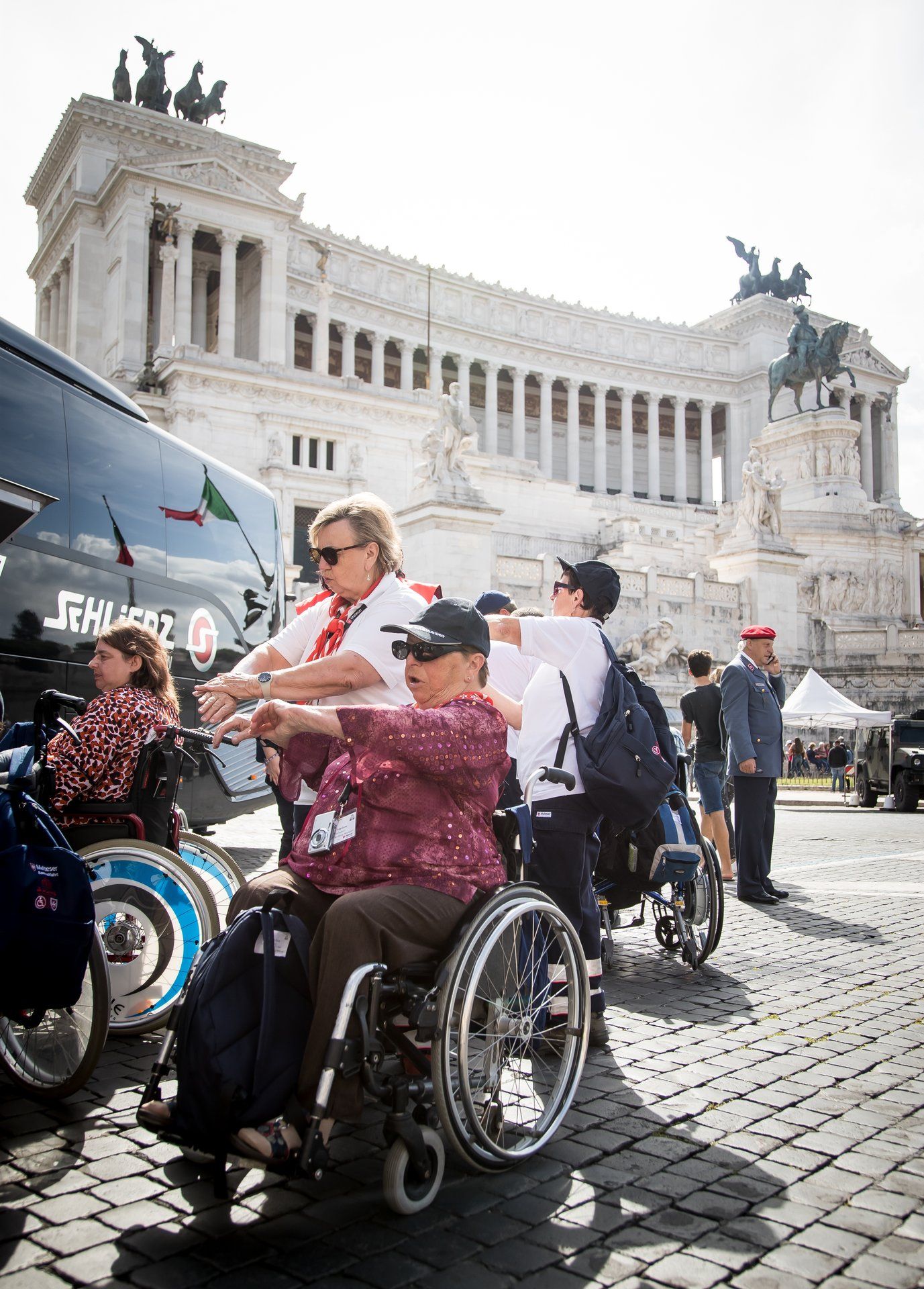 Am Nachmittag wagen sich die Pilgergruppen zu Fuß, mit Rollstuhl und Rollator auf das Kopfsteinpflaster des antiken Roms und besuchen die einmaligen Sehenswürdigkeiten der Ewigen Stadt.