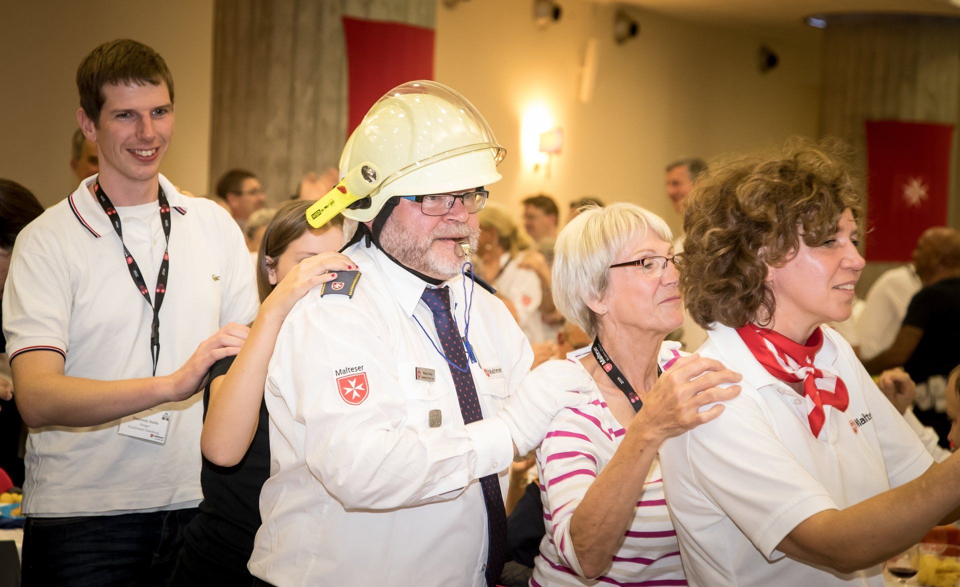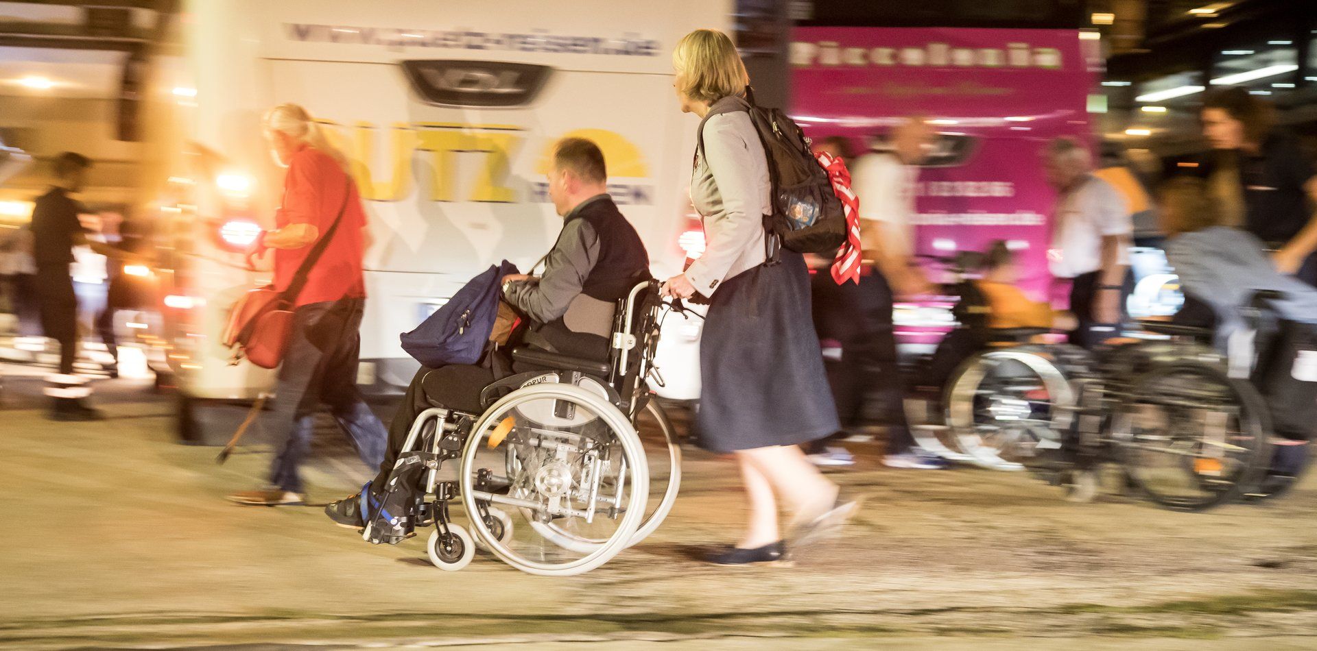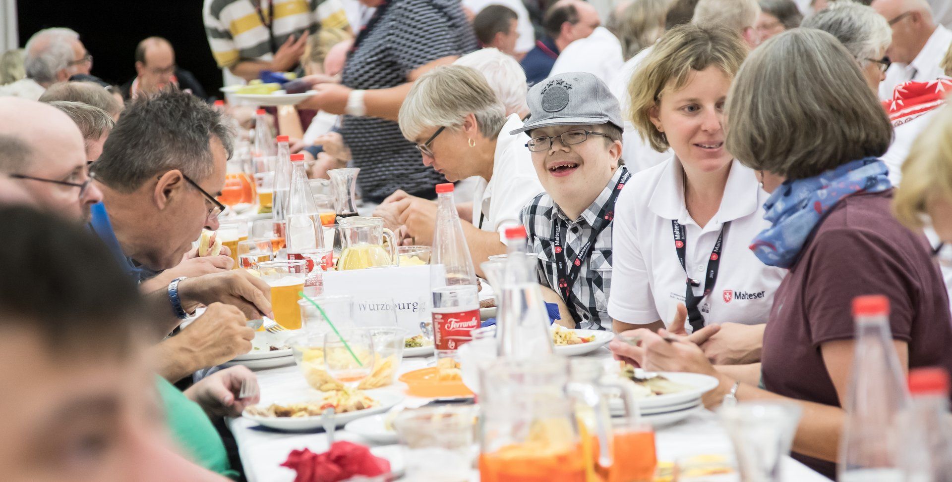 Fleißige Helfer des Service-Teams des Fraterna Domus und der Malteser verwandeln an diesem Abend einen großen Konferenzraum in einen echten Festsaal. Das wunderbare Essensbuffet und gute Musik sorgen für ausgelassene, fröhliche Stimmung unter den Pilgern, auch wenn es schon morgen heißt, Abschied zu nehmen. Nach den richtigen Dankesworten der Wallfahrtsleitung, dem tosenden Applaus für unsere tollen römischen Motorrad-Polizisten, tanzen die Rollstühle noch bis tief in die Nacht.