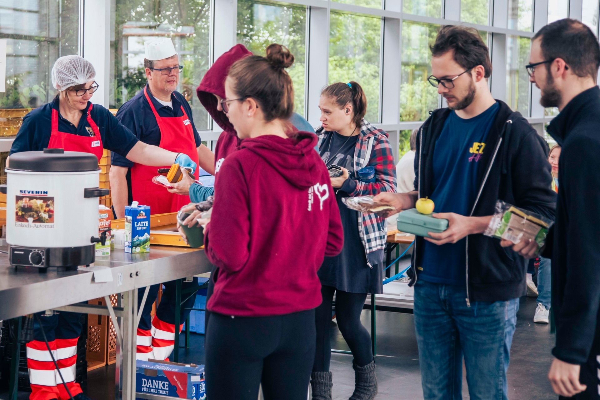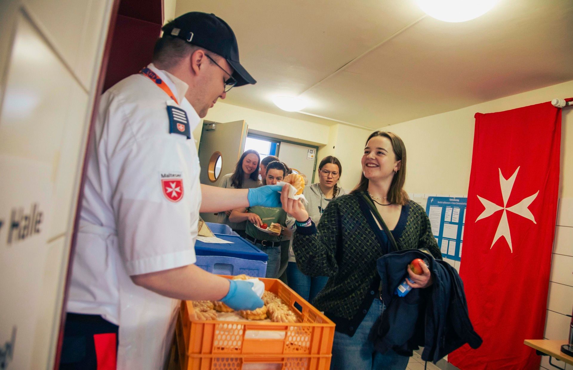 Betreuungseinheiten kümmern sich in den Unterkünften um Schlafplätze, Dusch- und Waschmöglichkeiten und das Ausgeben des Frühstücks an die Übernachtungsgäste und die zahlreichen Volunteers des Katholikentags. Zudem sichern sie auch die Verpflegung der Malteser Einsatzkräfte, die in einer Jugendherberge ihr eigenes Quartier bezogen haben.