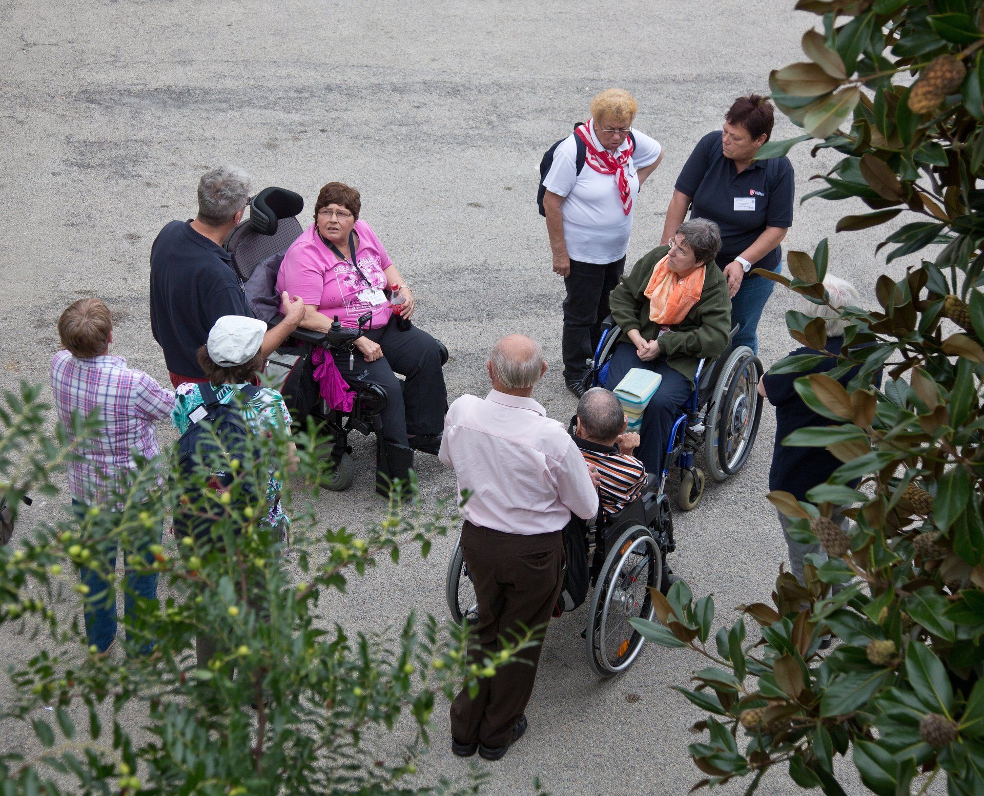 Kurz vor vier ist der erste Bus da, und dann geht es Schlag auf Schlag: In 20 speziell behindertengerechten Bussen kommen die 800 Pilger aus 27 deutschen Diözesen bei sonnigen 23 Grad in Sacrofano nahe Rom an. Vom dortigen großen Pilgerhaus "Fraterna Domus" aus werden sie in den nächsten Tagen die Ewige Stadt erkunden und ihren Glauben stärken.