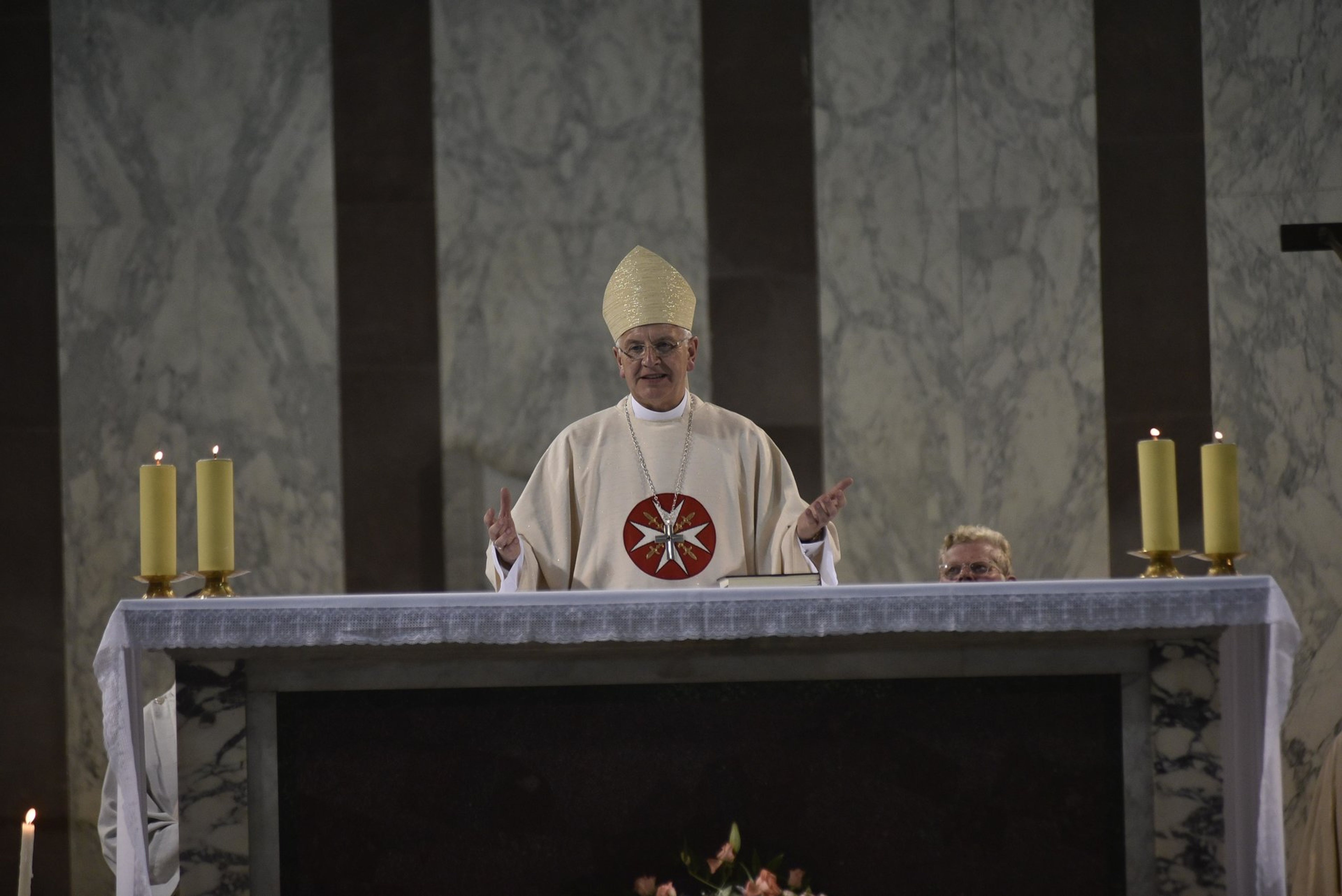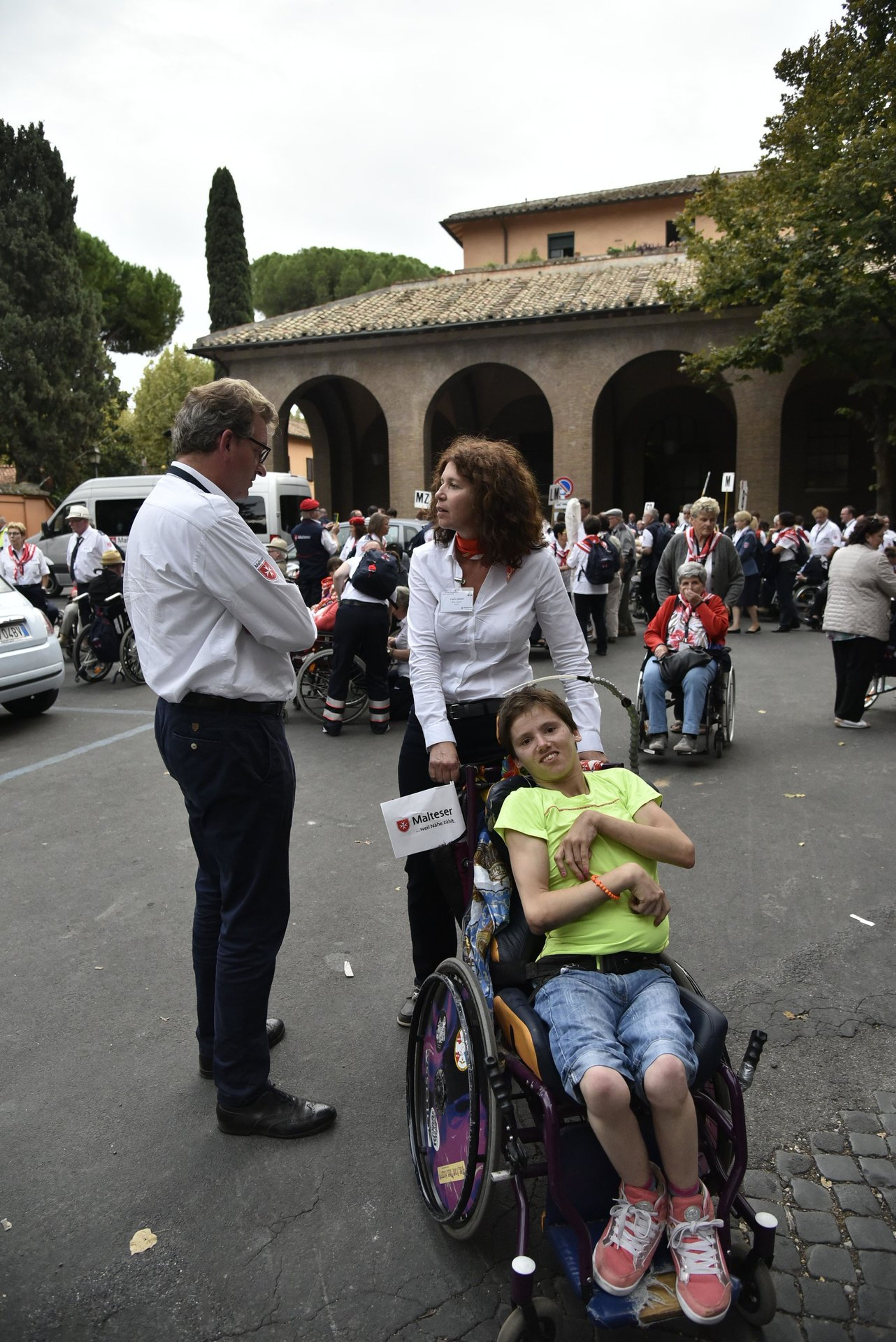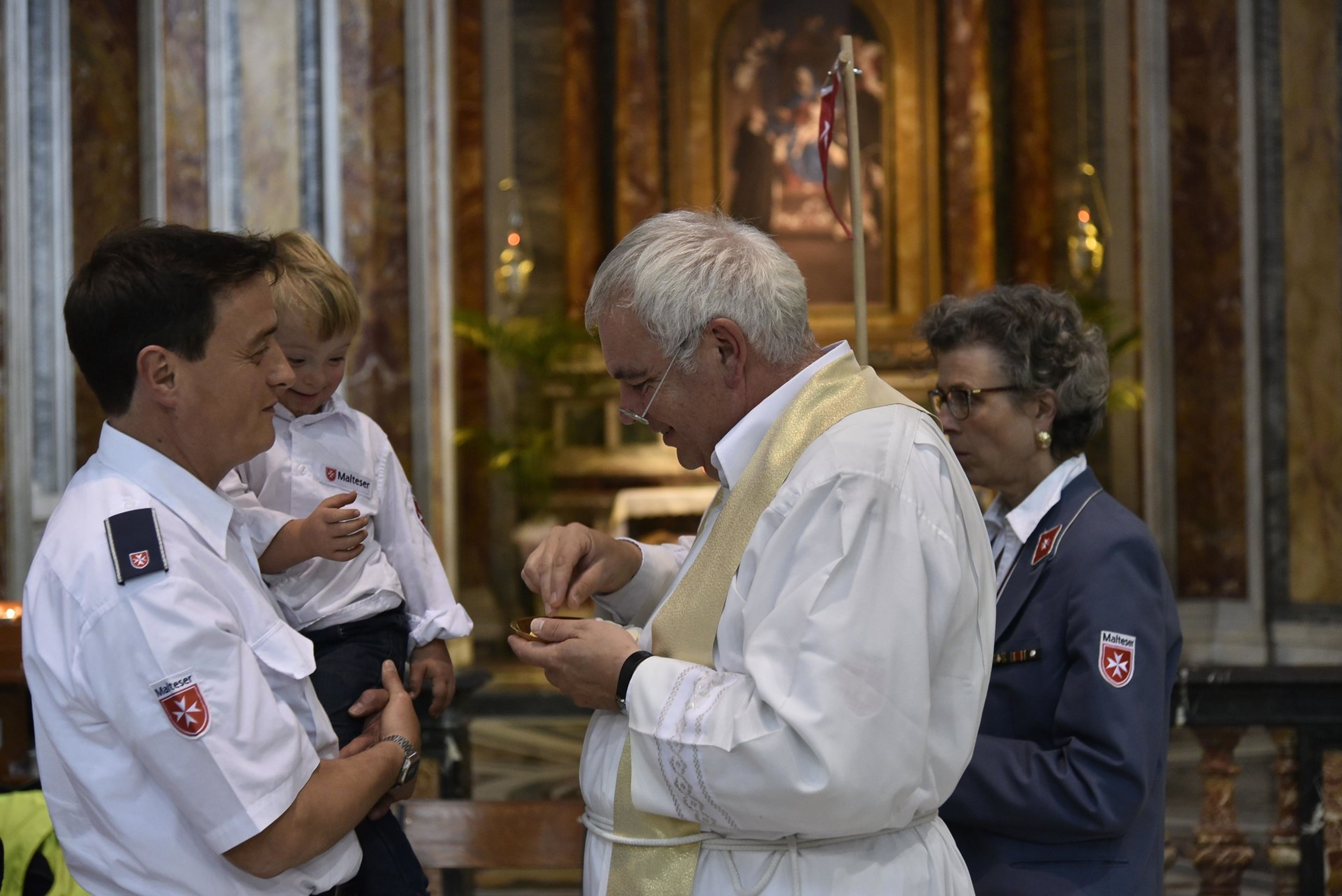 Dritte und letzte Station des reichhaltigen Programms an diesem Wallfahrts-Mittwoch: die heilige Messe in Santa Sabina auf dem Aventin. Für die nach dem frühen Aufbruch um 6.30 Uhr hier und dort aufkommende Müdigkeit hatte Konzelebrant Andreas Fuchs eine Trillerpfeife der römischen Motorrad-Polizei mitgebracht - und setzte sie zum Vergnügen der Pilger am Ende seiner Predigt als Weckimpuls ein.