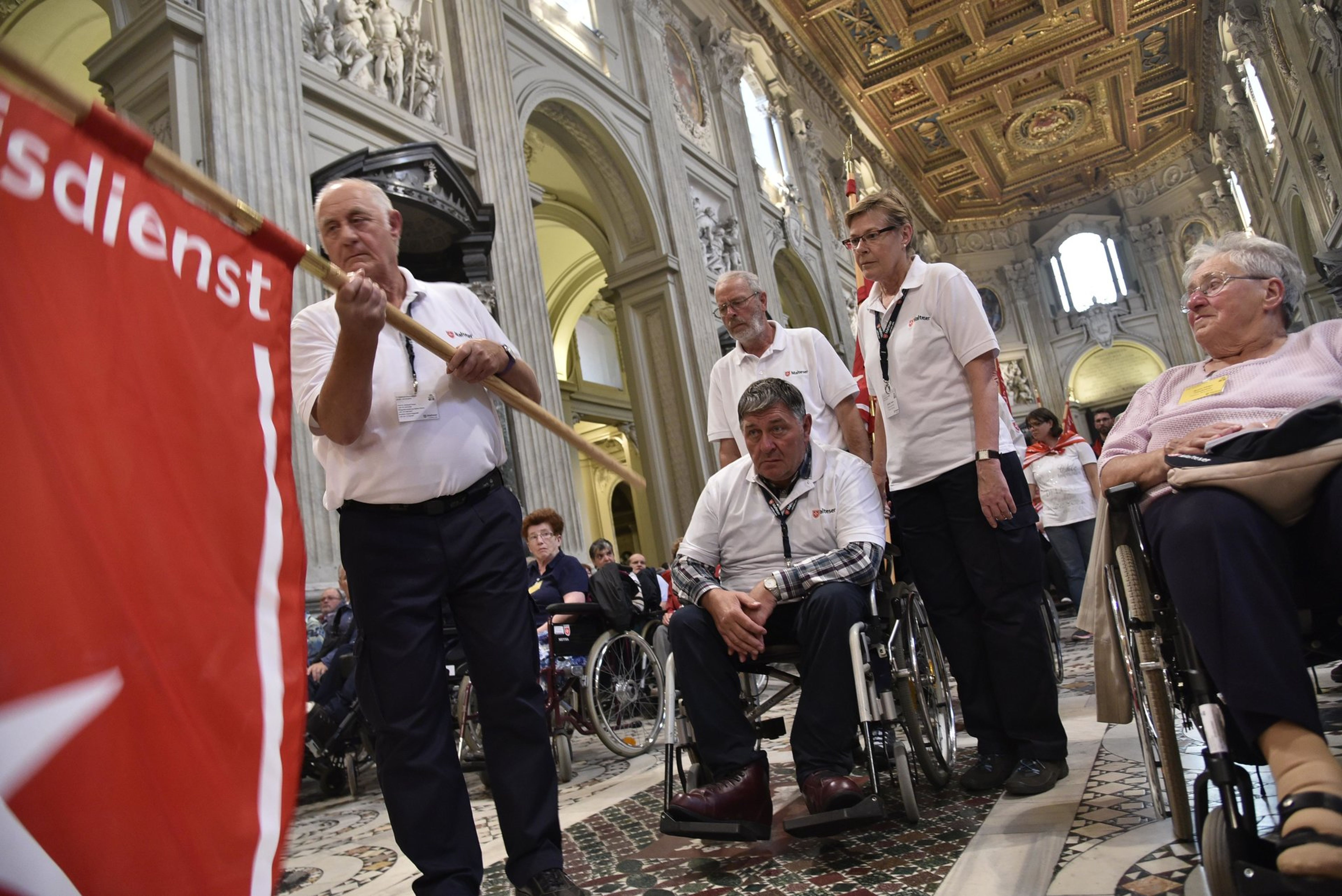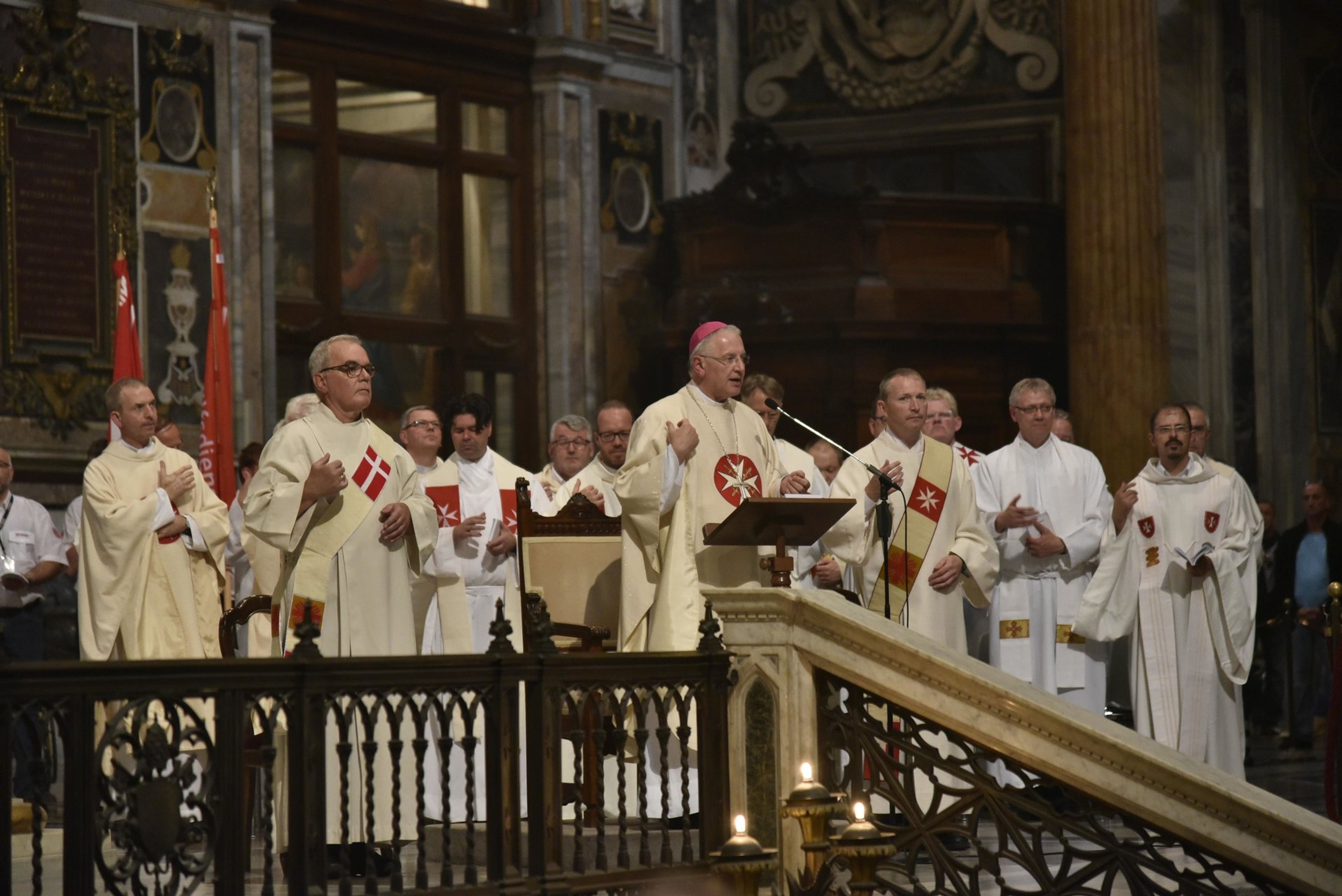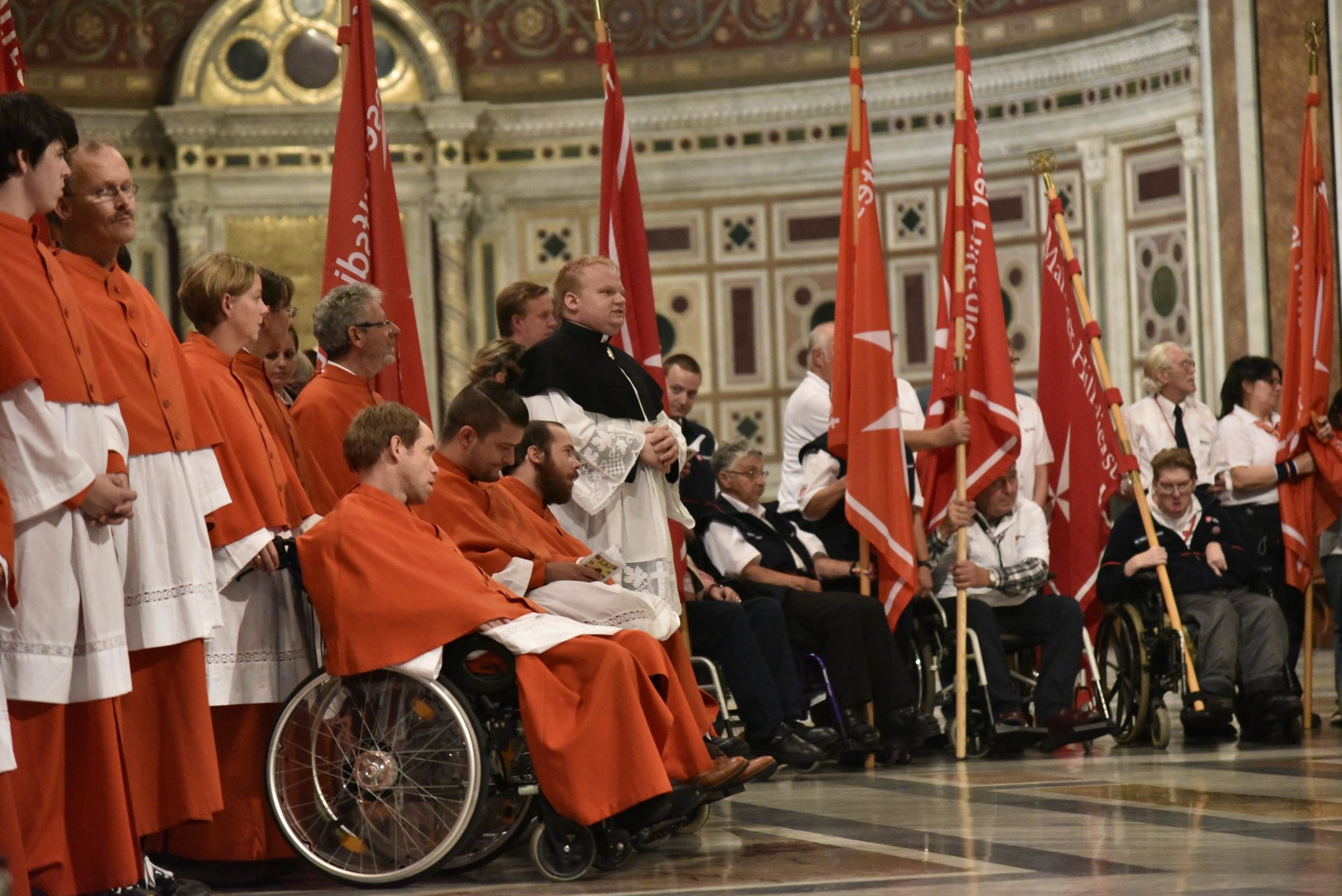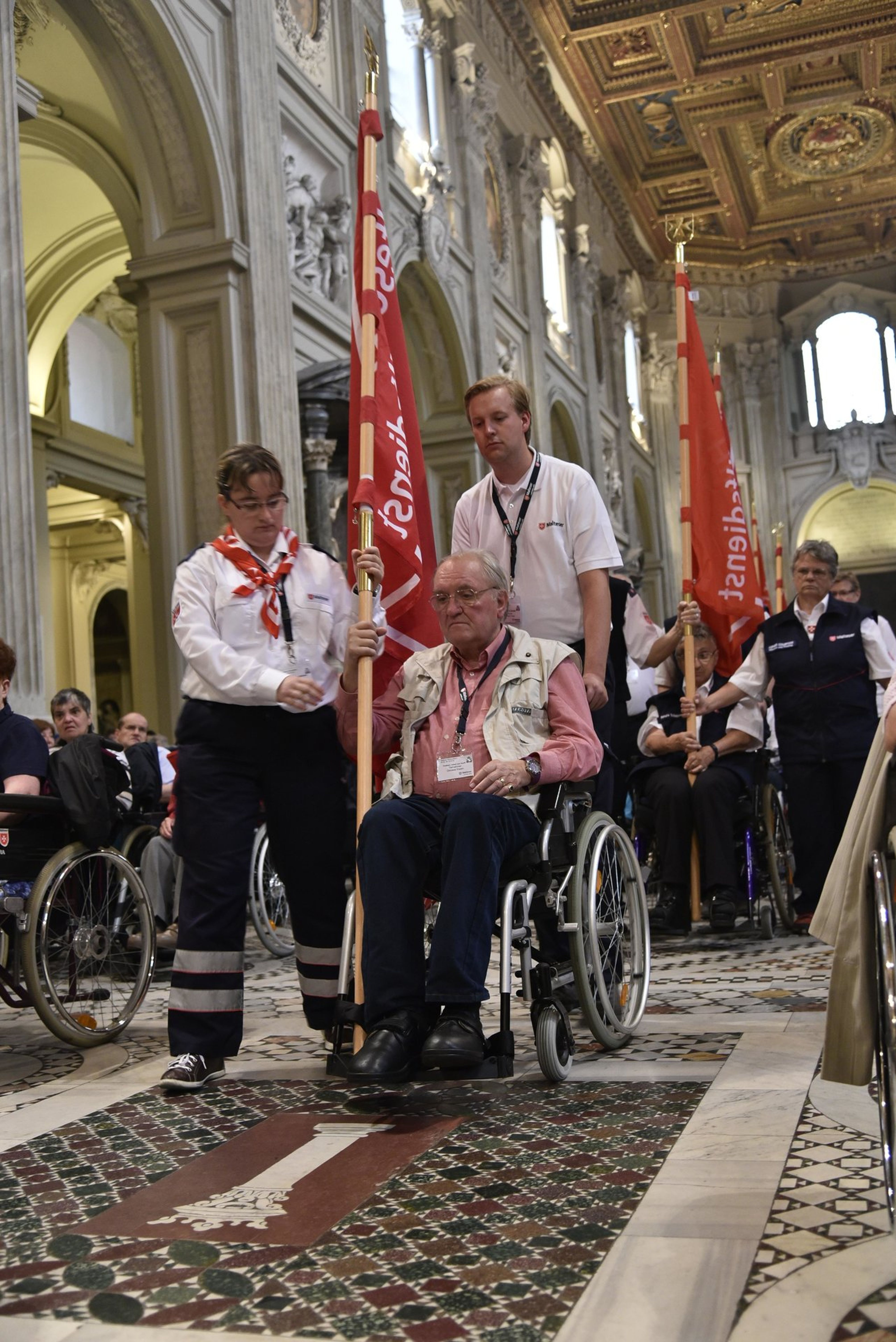 Im Angesicht der mächtigen Statuen der zwölf Apostel feiern die Pilger der malteser ihre Abschlussmesse in der Lateranbasilika St. Johannes. Mit kindlichem Vertrauen die Hand Gottes zu nehmen und nicht mehr loszulassen ist die Botschaft der Predigt von Fra' Georg Lengerke, der in seiner Predigt die verbindende Linie in den feierlichen Pilgergottesdiensten nachzeichnet. Und zum Kehraus bringen die jungen Bläser des St. Bernhard-Gymnasiums der malteser in Willich die Wallfahrer zum frohen Lachen und in Schwung: mit "When the Saints Go Marching In" im Dixie-Stil unter den Augen der Apostel.