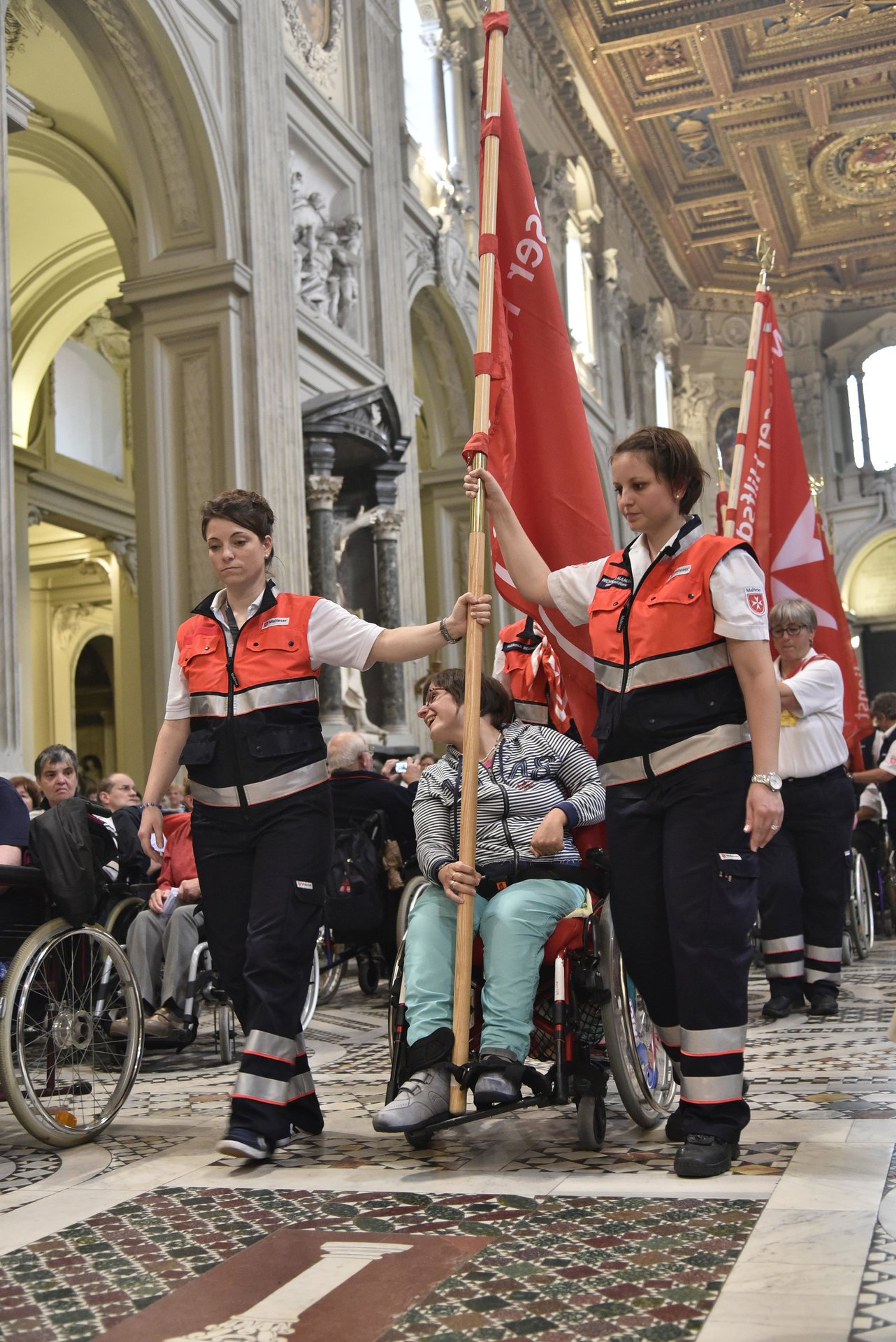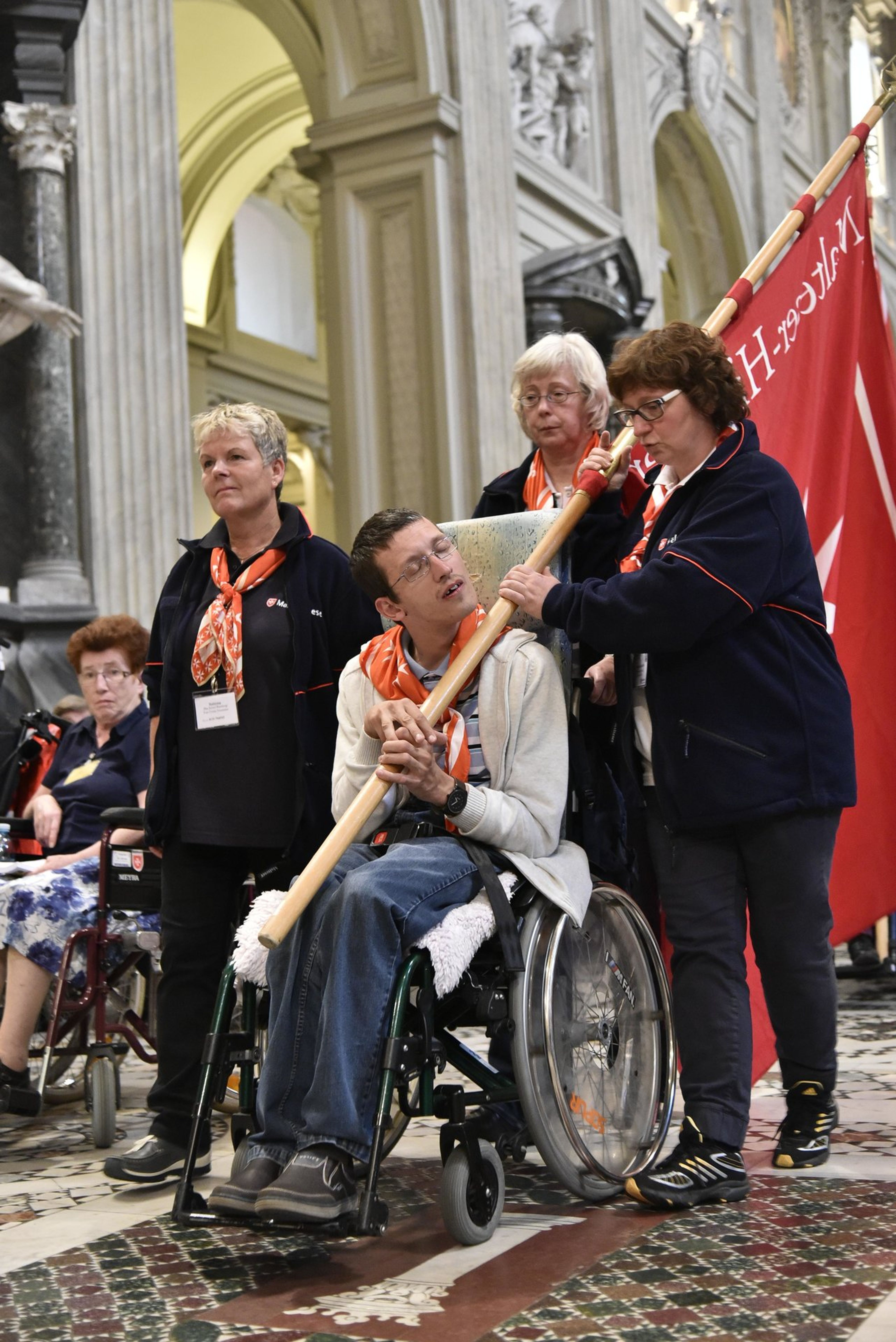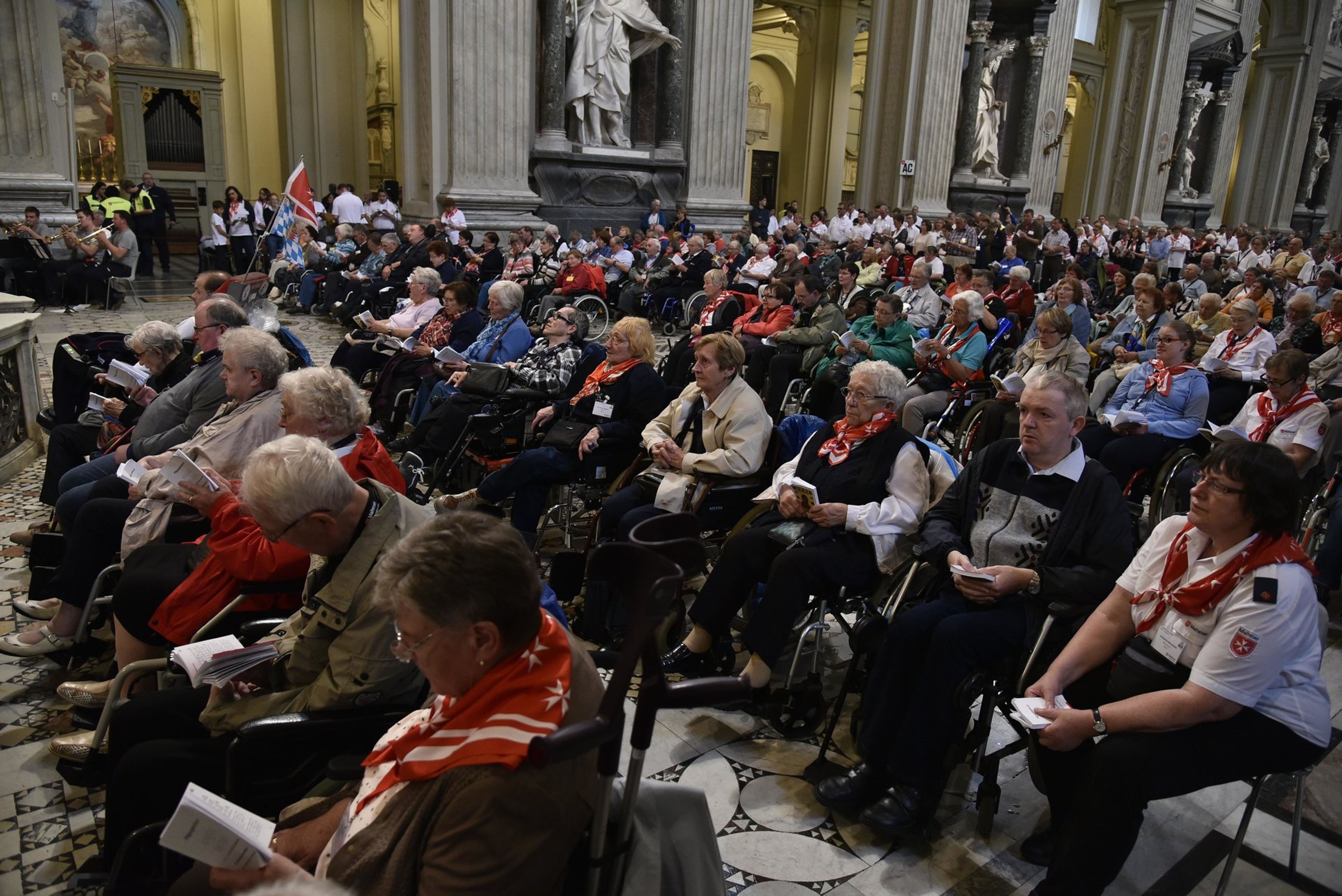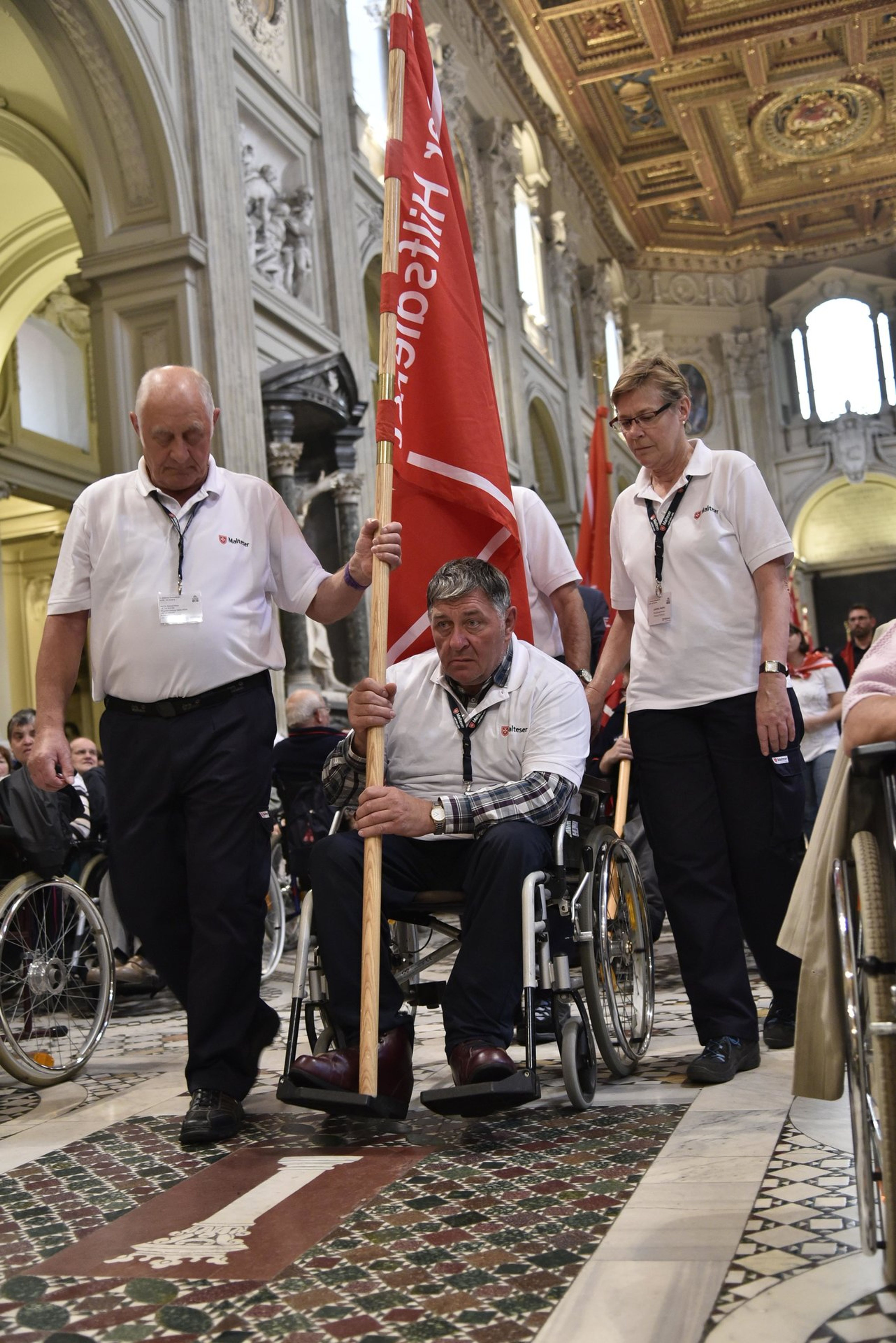 Im Angesicht der mächtigen Statuen der zwölf Apostel feiern die Pilger der malteser ihre Abschlussmesse in der Lateranbasilika St. Johannes. Mit kindlichem Vertrauen die Hand Gottes zu nehmen und nicht mehr loszulassen ist die Botschaft der Predigt von Fra' Georg Lengerke, der in seiner Predigt die verbindende Linie in den feierlichen Pilgergottesdiensten nachzeichnet. Und zum Kehraus bringen die jungen Bläser des St. Bernhard-Gymnasiums der malteser in Willich die Wallfahrer zum frohen Lachen und in Schwung: mit "When the Saints Go Marching In" im Dixie-Stil unter den Augen der Apostel.