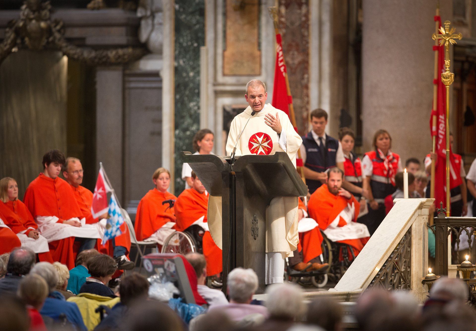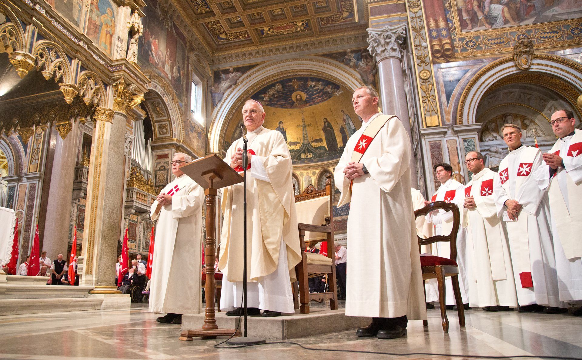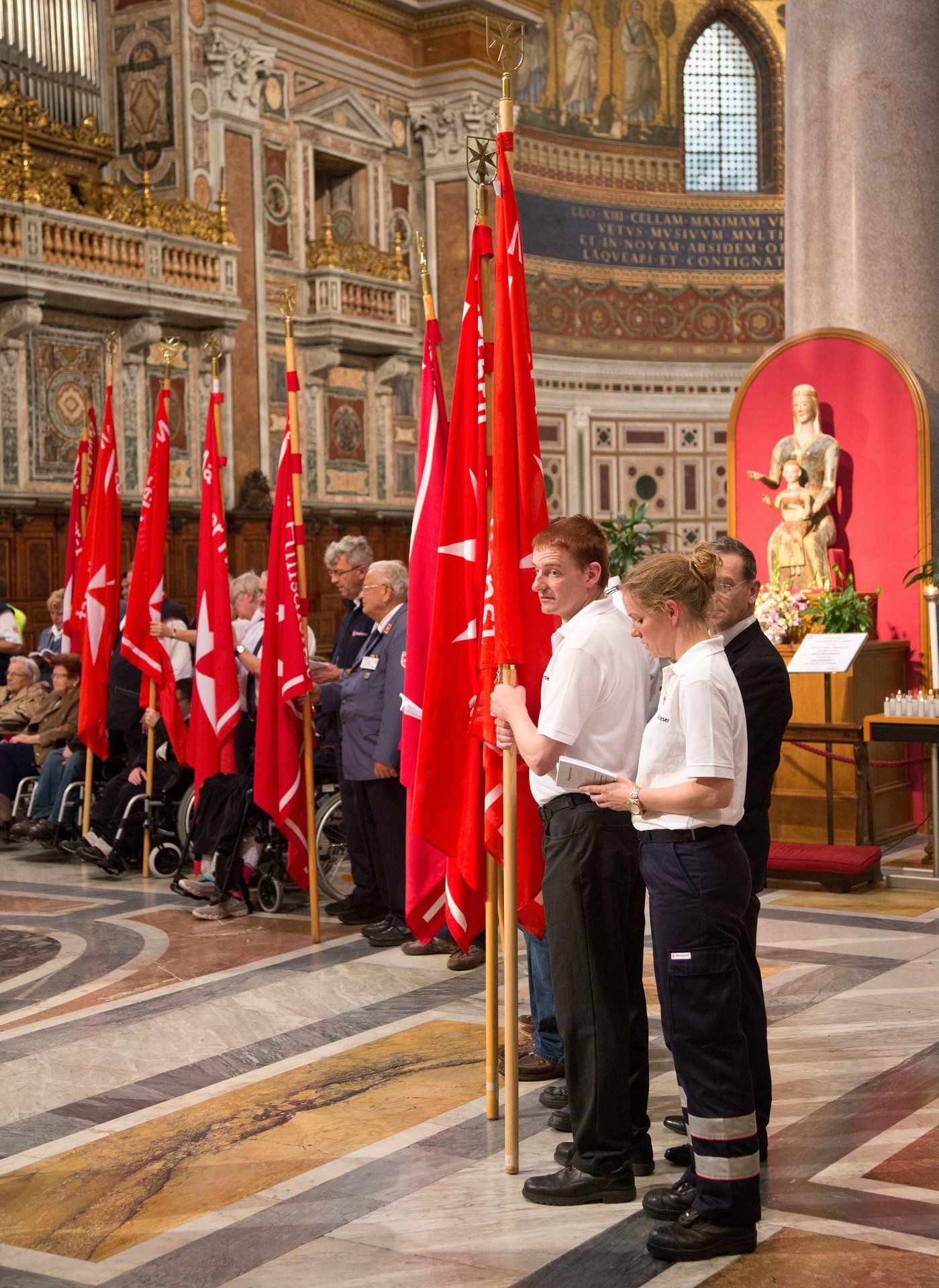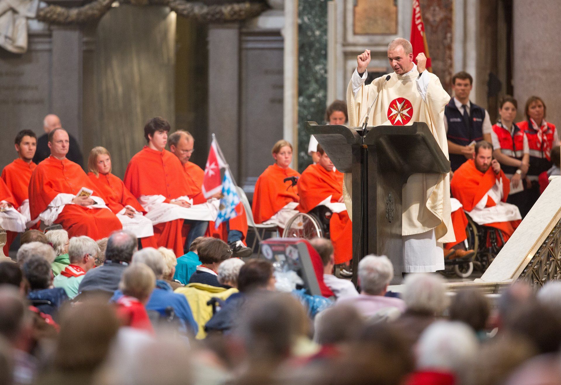 Im Angesicht der mächtigen Statuen der zwölf Apostel feiern die Pilger der malteser ihre Abschlussmesse in der Lateranbasilika St. Johannes. Mit kindlichem Vertrauen die Hand Gottes zu nehmen und nicht mehr loszulassen ist die Botschaft der Predigt von Fra' Georg Lengerke, der in seiner Predigt die verbindende Linie in den feierlichen Pilgergottesdiensten nachzeichnet. Und zum Kehraus bringen die jungen Bläser des St. Bernhard-Gymnasiums der malteser in Willich die Wallfahrer zum frohen Lachen und in Schwung: mit "When the Saints Go Marching In" im Dixie-Stil unter den Augen der Apostel.