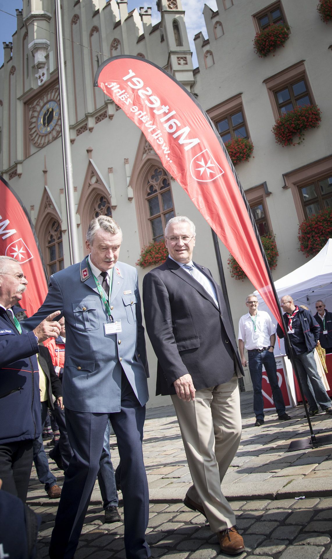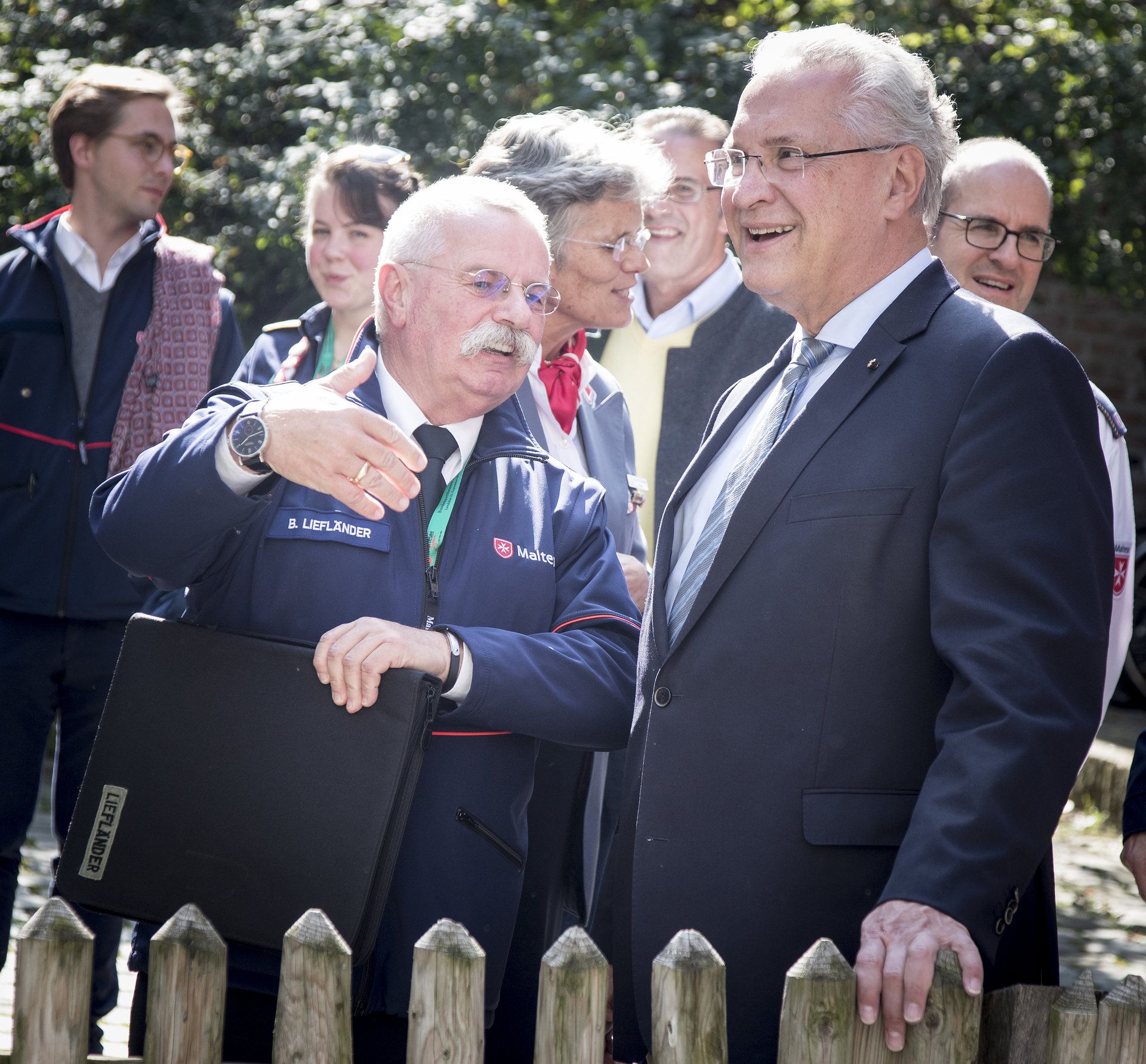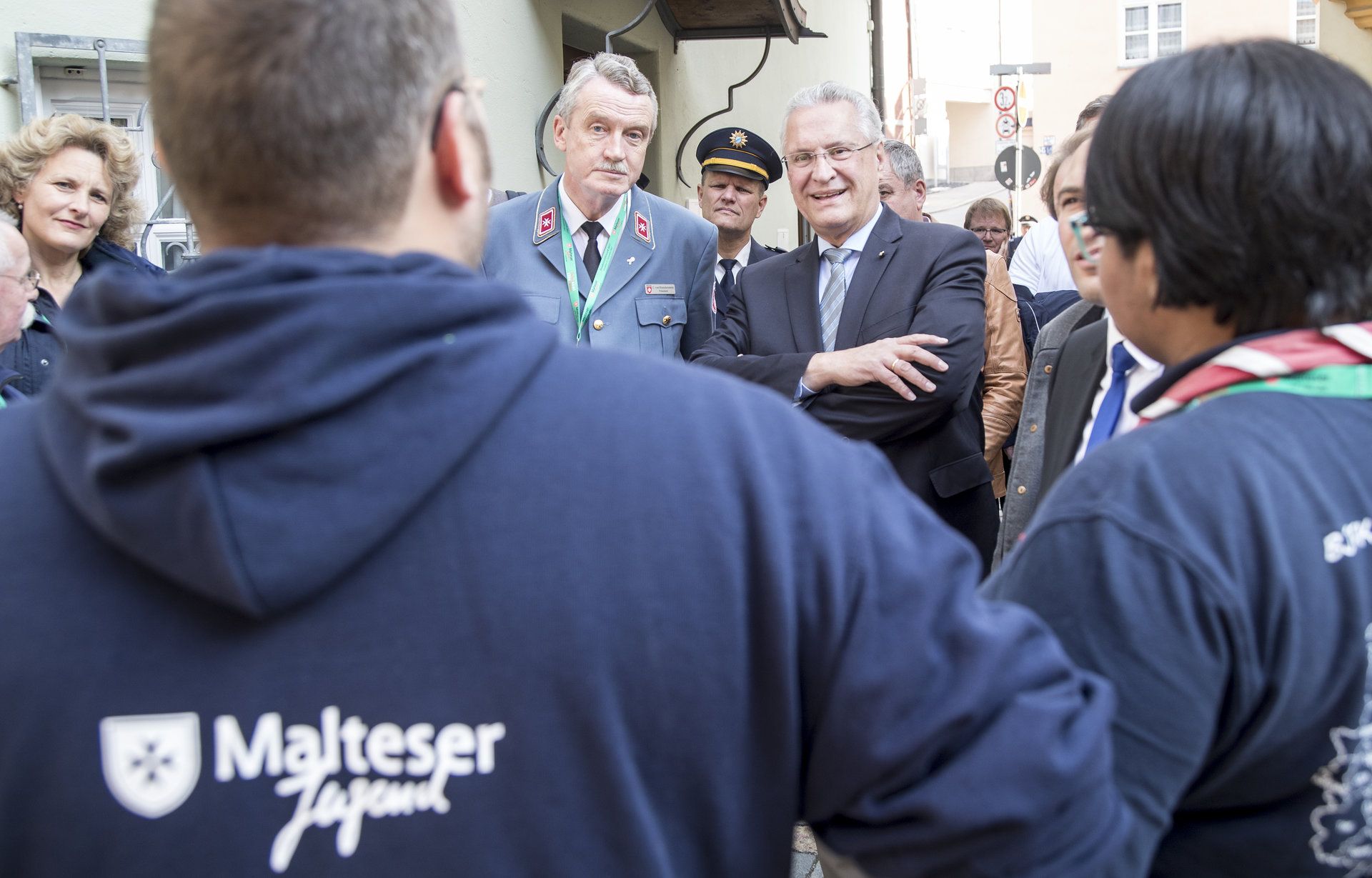 Der bayerische Innenminister Joachim Herrmann besuchte am Samstag des Wettbewerbswochenendes ausgewählte Stationen der Sanitätsdienst-, Jugend- und Schulsanitätsdienstgruppen. Fachleute und der Präsident des Malteser Hilfsdienstes, Dr. Constantin von Brandenstein, begleiteten ihn dabei.
