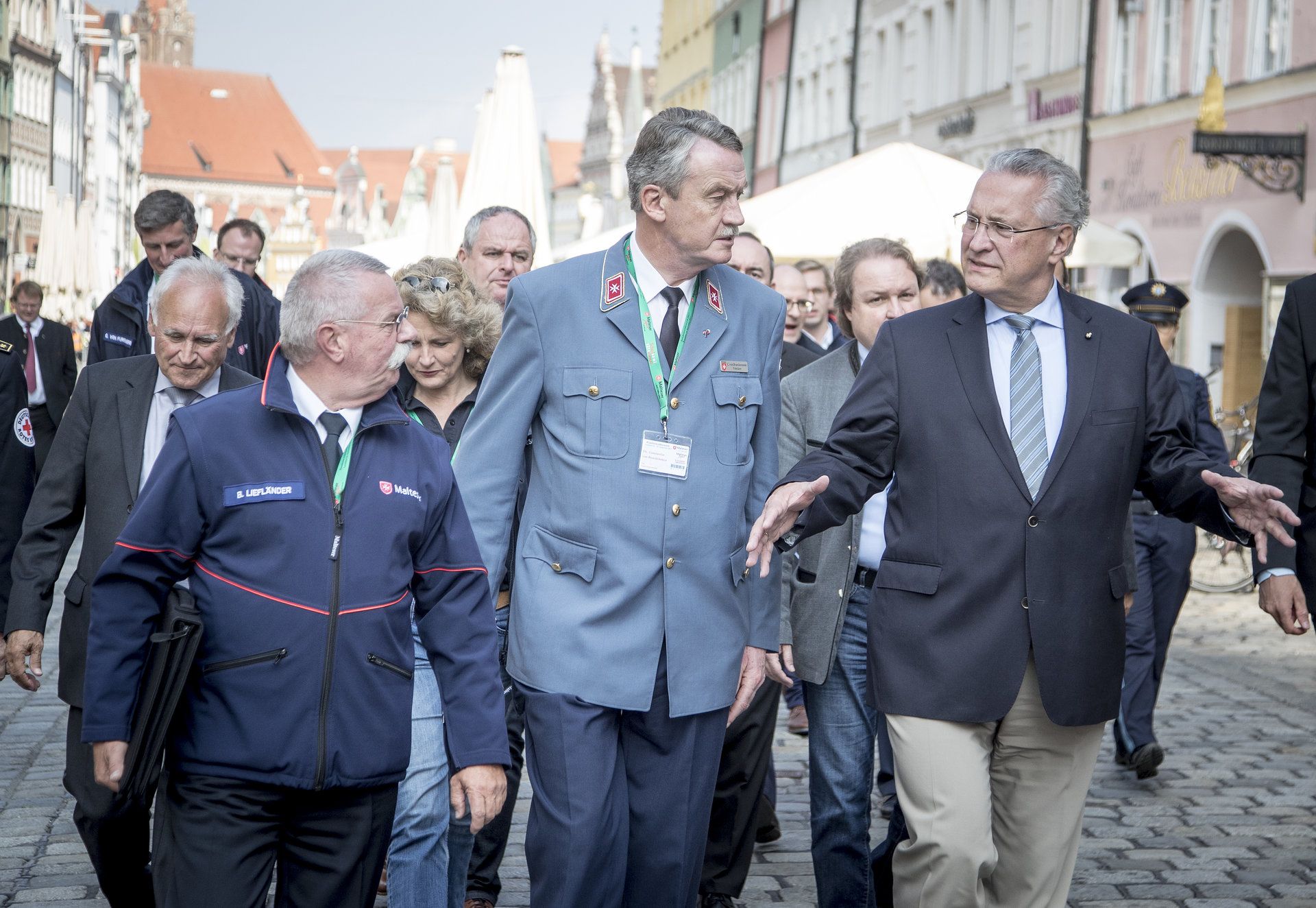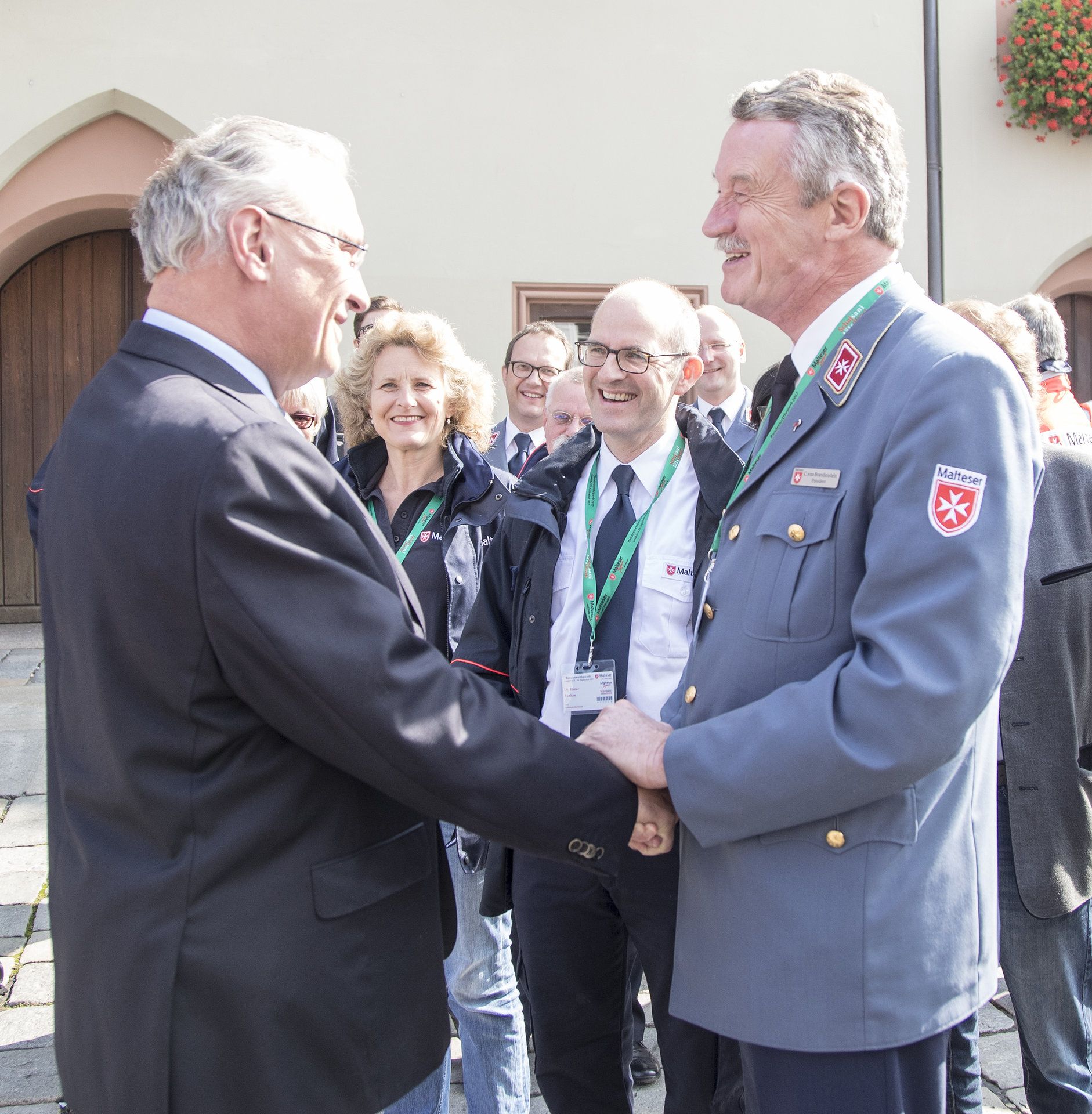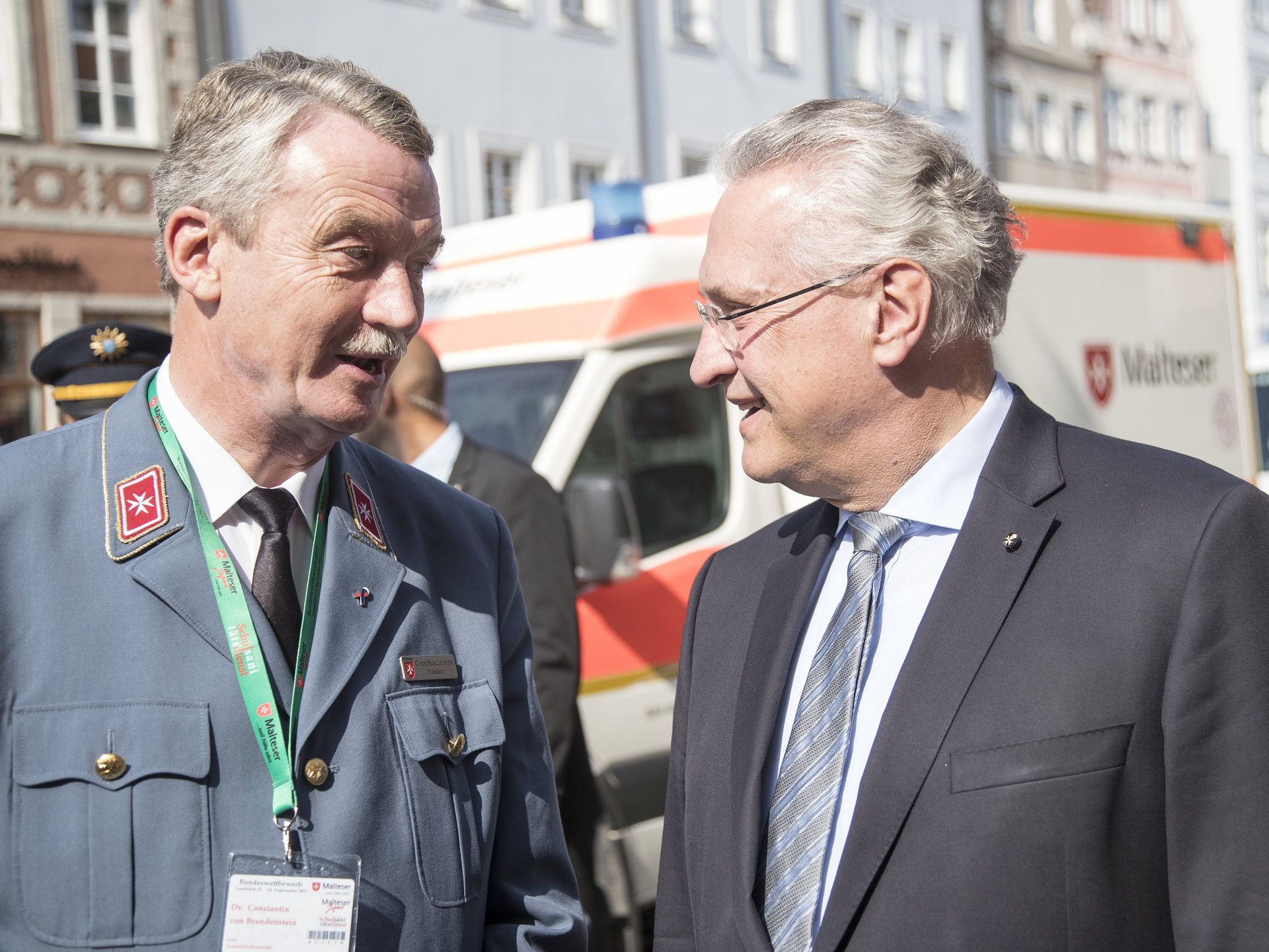 Der bayerische Innenminister Joachim Herrmann besuchte am Samstag des Wettbewerbswochenendes ausgewählte Stationen der Sanitätsdienst-, Jugend- und Schulsanitätsdienstgruppen. Fachleute und der Präsident des Malteser Hilfsdienstes, Dr. Constantin von Brandenstein, begleiteten ihn dabei.