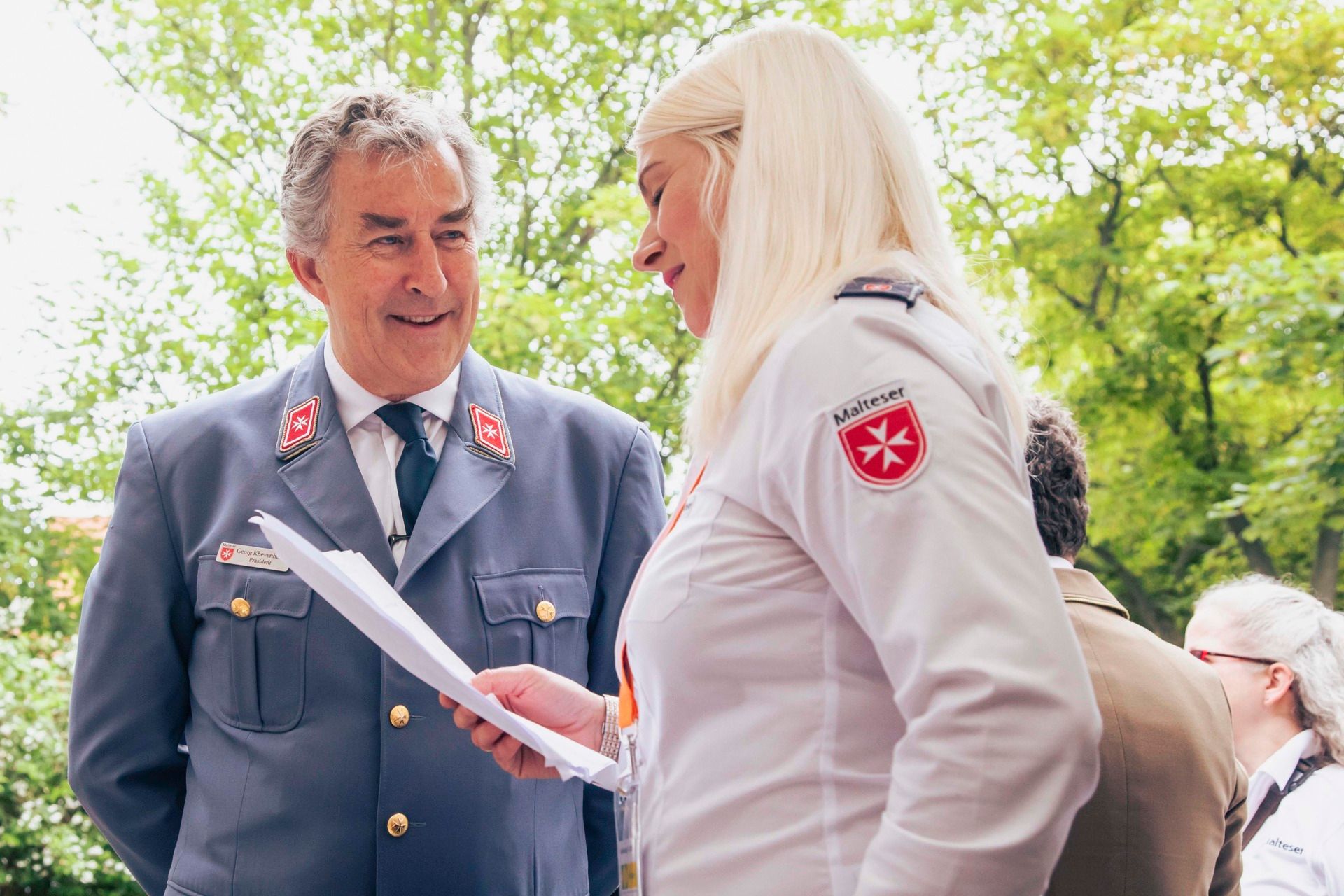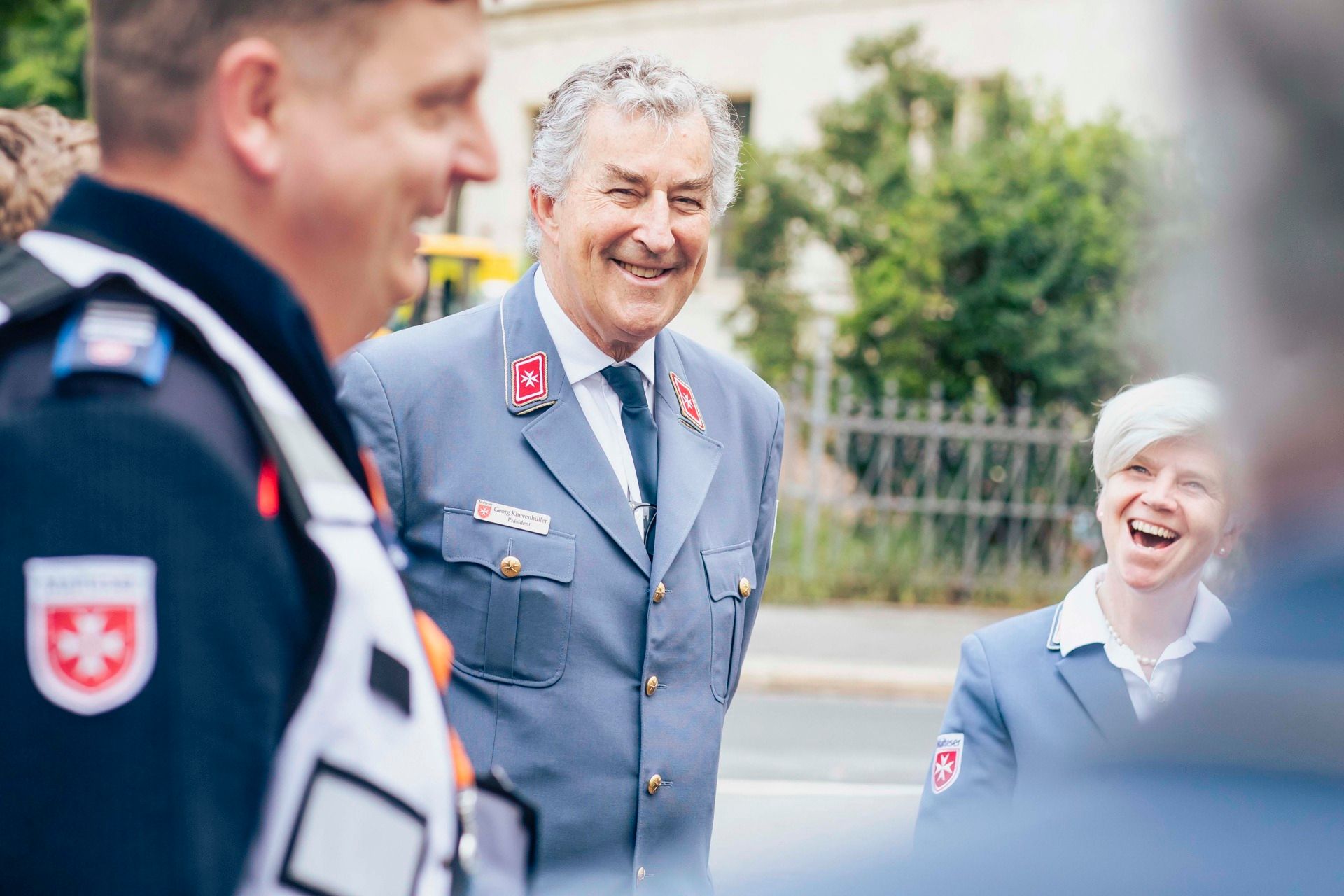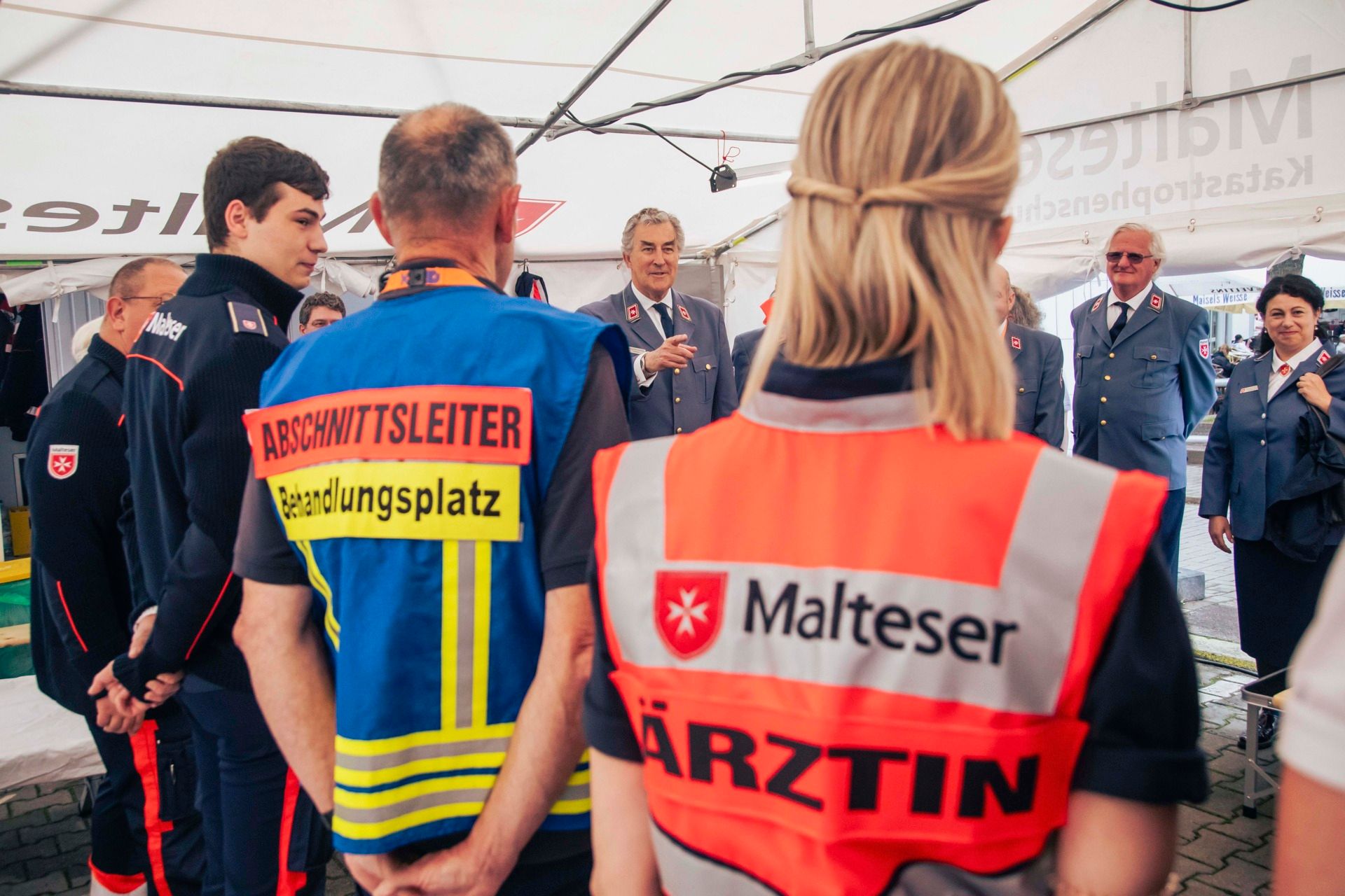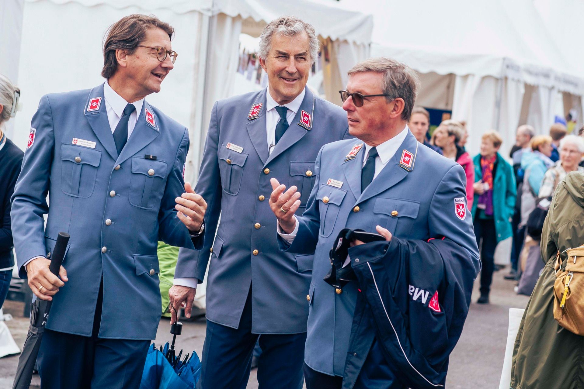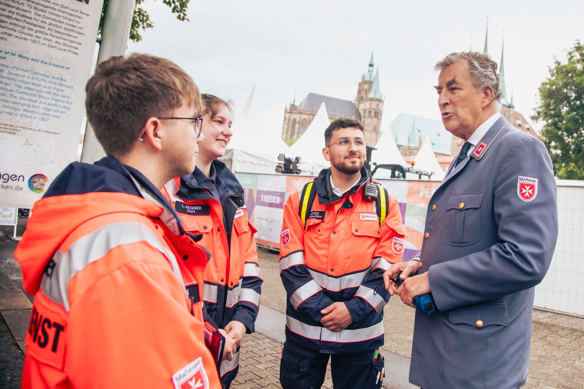 Traditioneller Rundgang des Malteser Präsidiums über das Katholikentagsgelände, gemeinsam mit Vertreterinnen und Vertretern der Johanniter-Unfall-Hilfe.