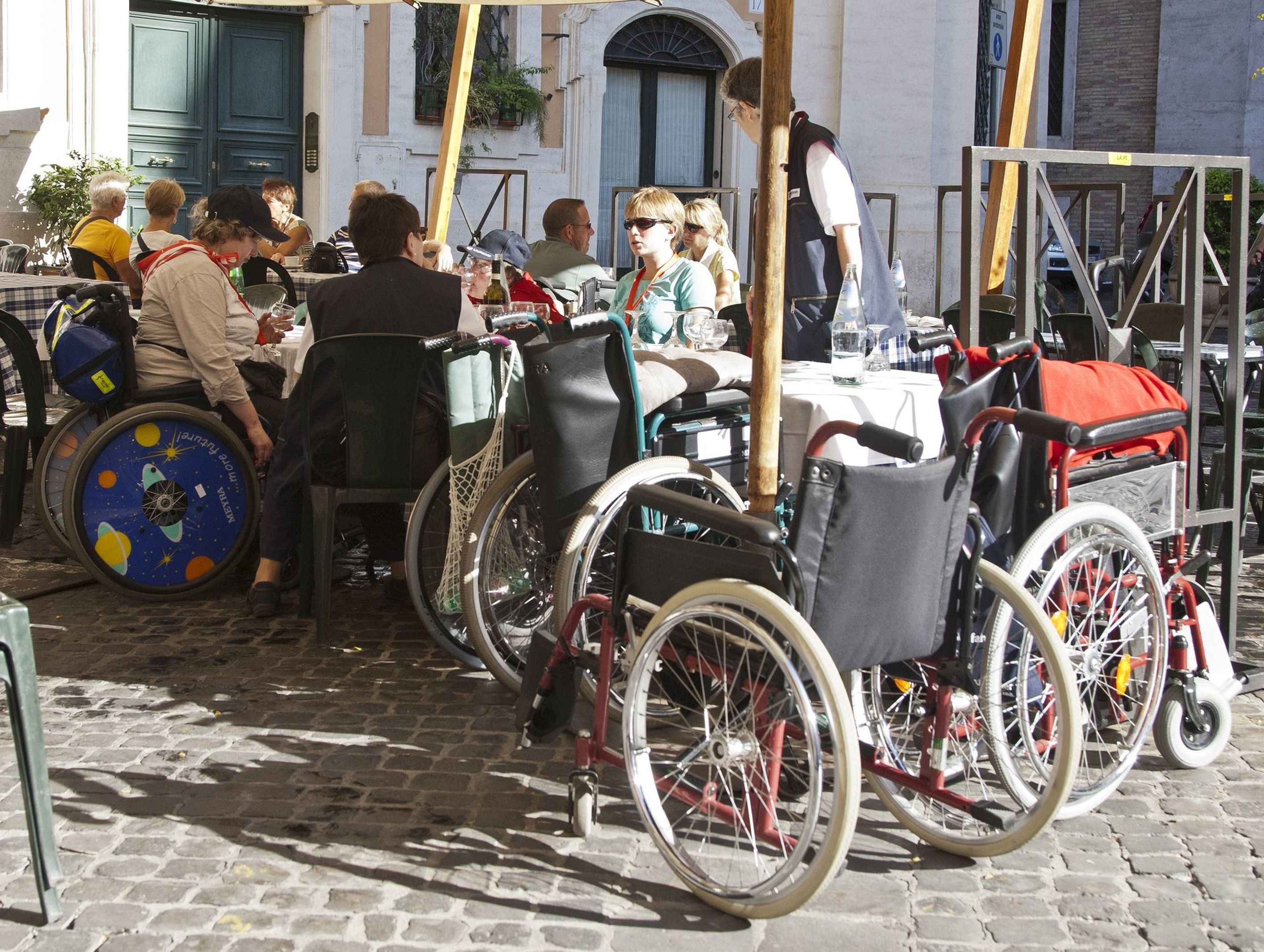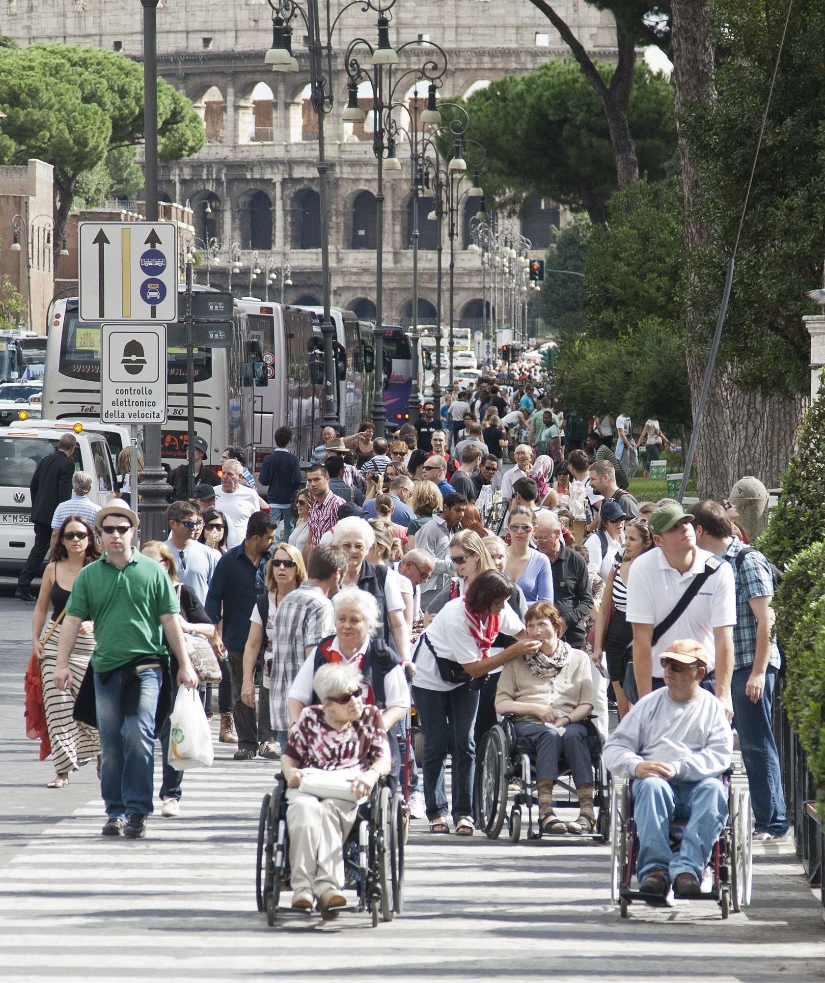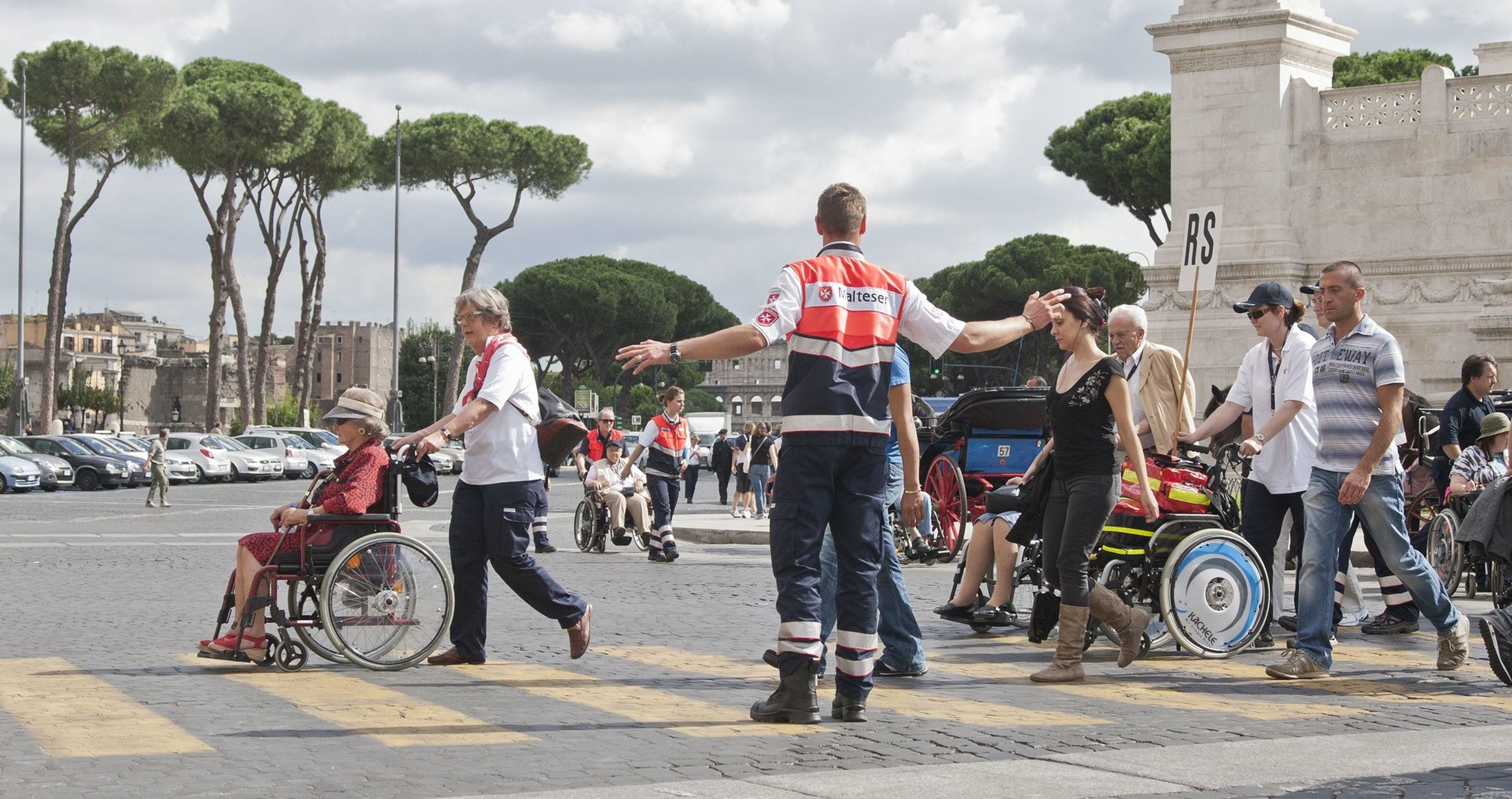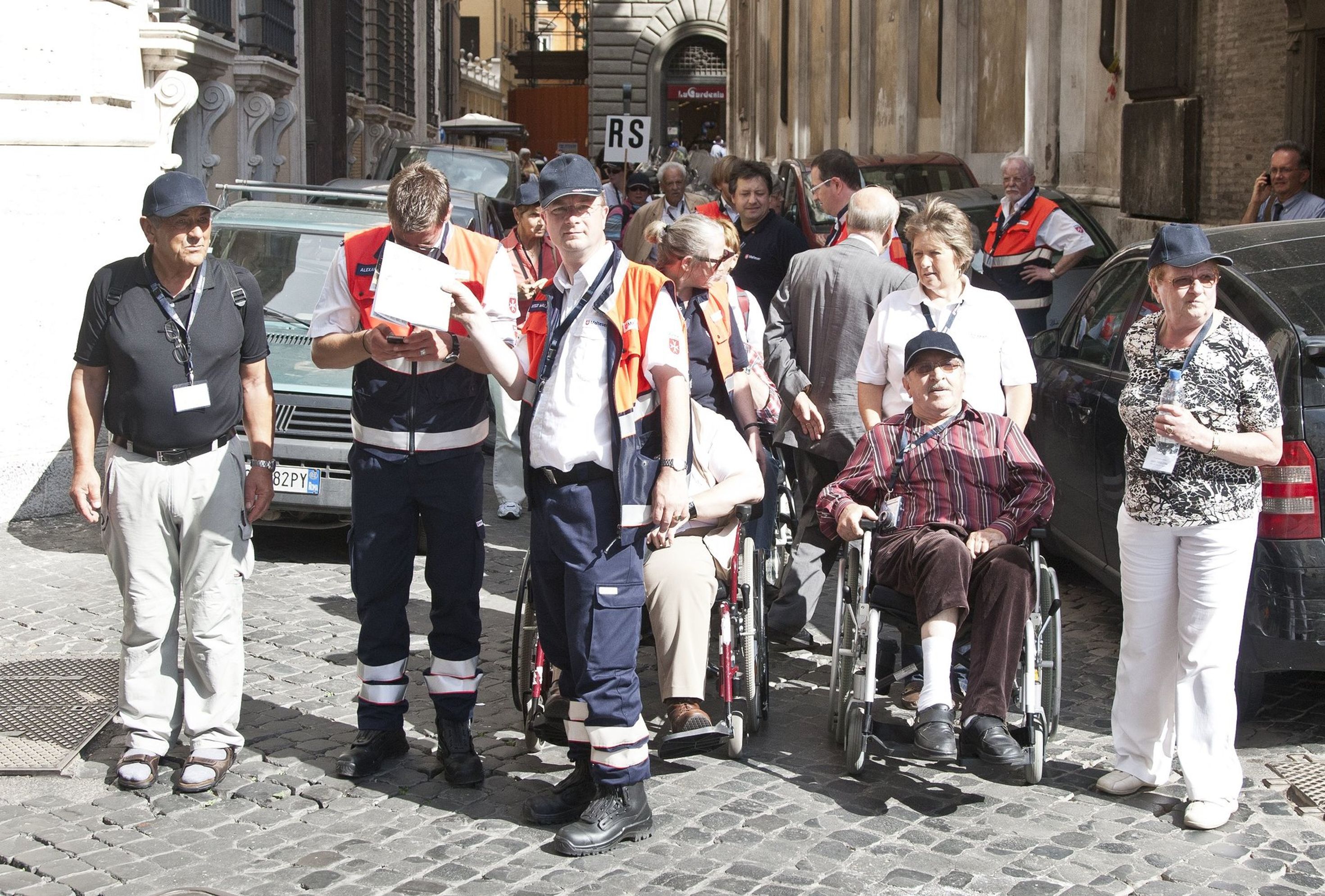 Geleitet von der römischen Motorradpolizei schwärmten die deutschen Pilger zu Fuß, mit Rollstuhl und Rollator zu den Sehenswürdigkeiten der Ewigen Stadt aus. Und wieder zeigte sich: So lebhaft und temperamentvoll es im römischen Verkehr sonst auch zugeht, wollte eine der Rolli-Gruppen über die Straße, wurden die heimischen Motorrad- und Autofahrer vorsichtig und rücksichtsvoll.