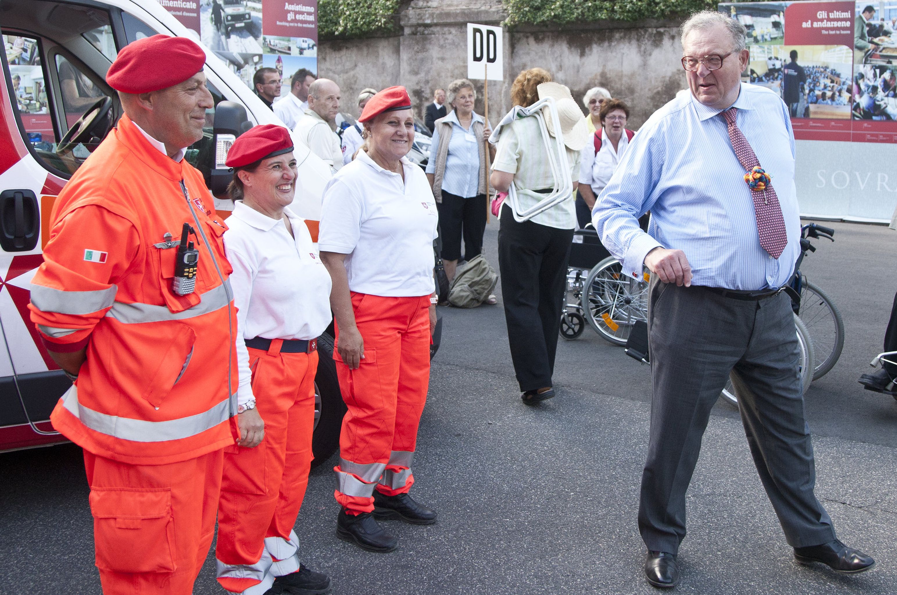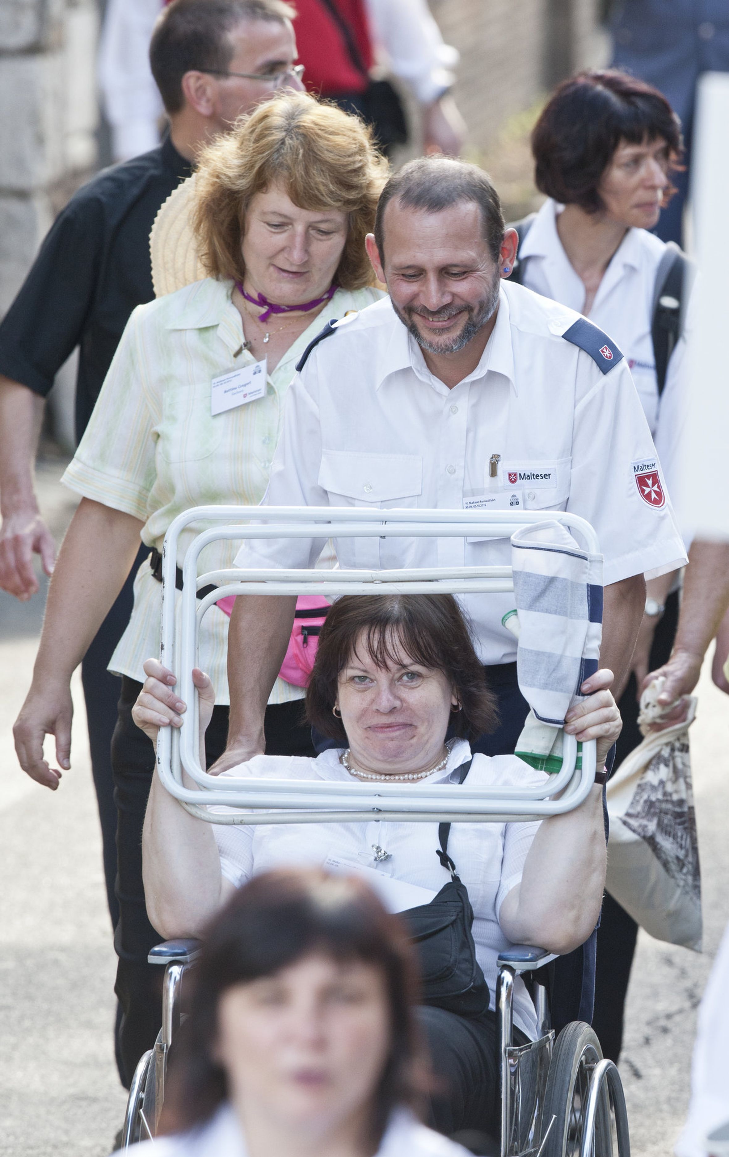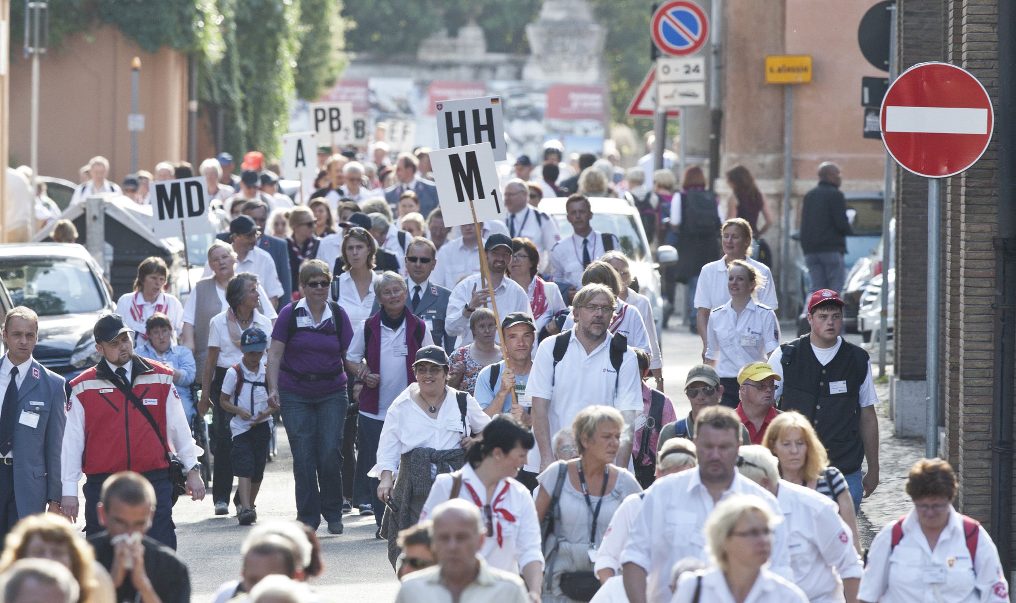 „Es ist toll, dass hier so viele Menschen aus allen Diözesen Deutschlands zusammengekommen sind“, begrüßte der Großmeister des malteserordens, Fra’ Matthew Festing, die Pilger am Wallfahrts-Mittwoch im Garten der Villa Malta auf dem Aventin. Mit sichtlicher Freude schüttelte er die Hände der Gäste aus Deutschland, wechselt mit ihnen herzliche Worte und stellte sich geduldig für gemeinsame Fotos vor die allseits gezückten Kameras. Und die Wallfahrer ließen sich die edlen, gereichten Häppchen munden, besichtigten Räume und Gärten und genossenen den weltberühmten Schlüsselloch-Blick auf Sankt Peter.