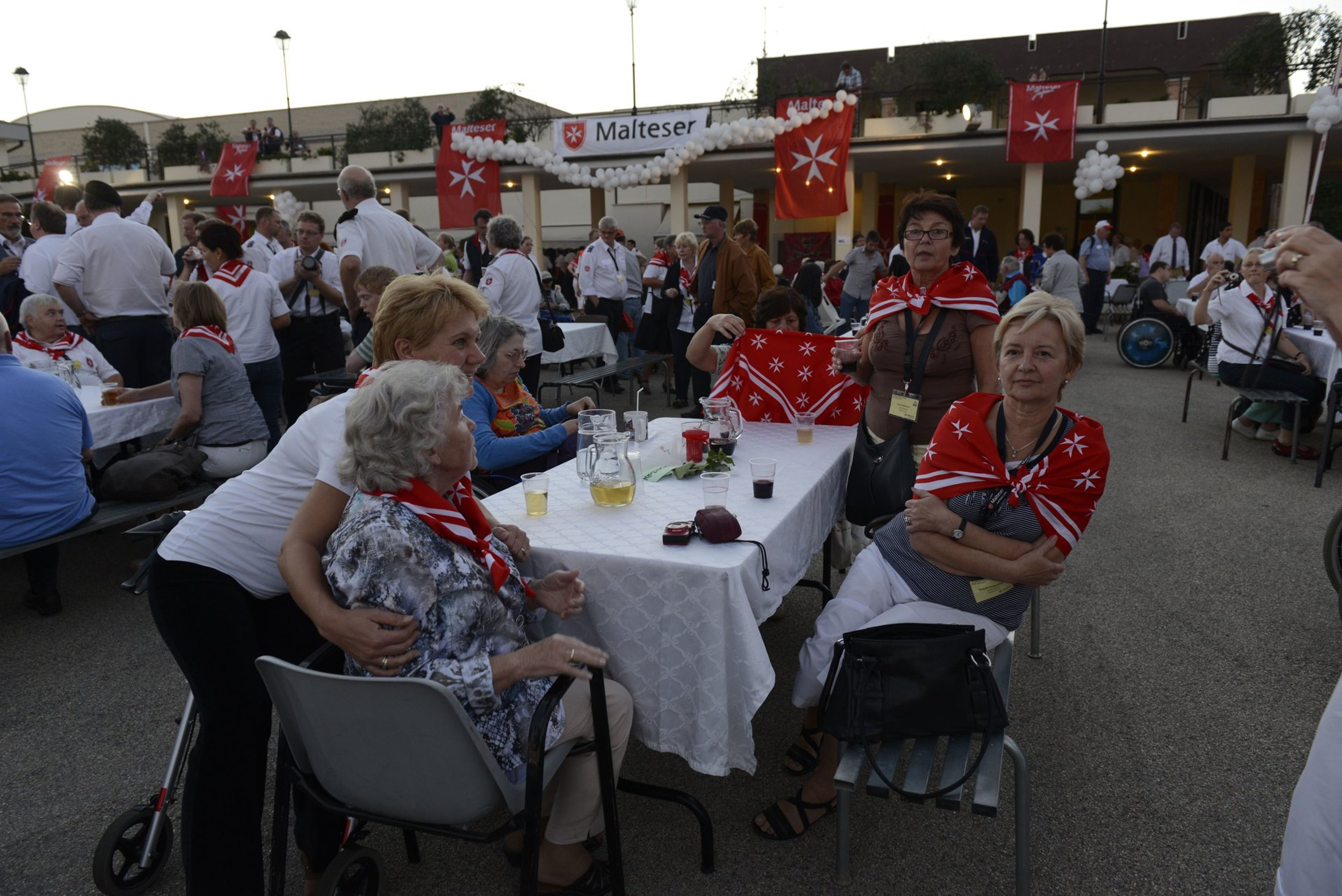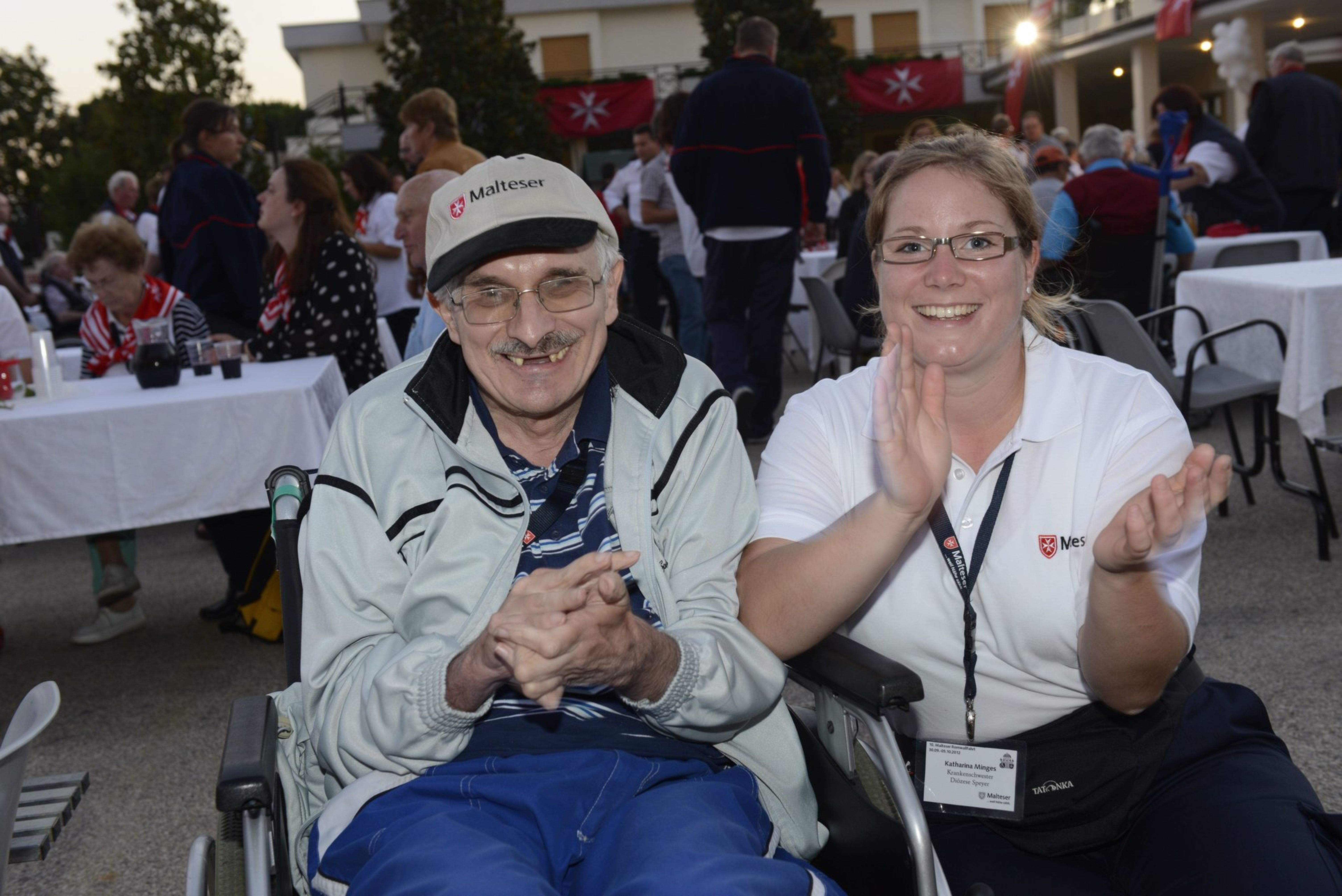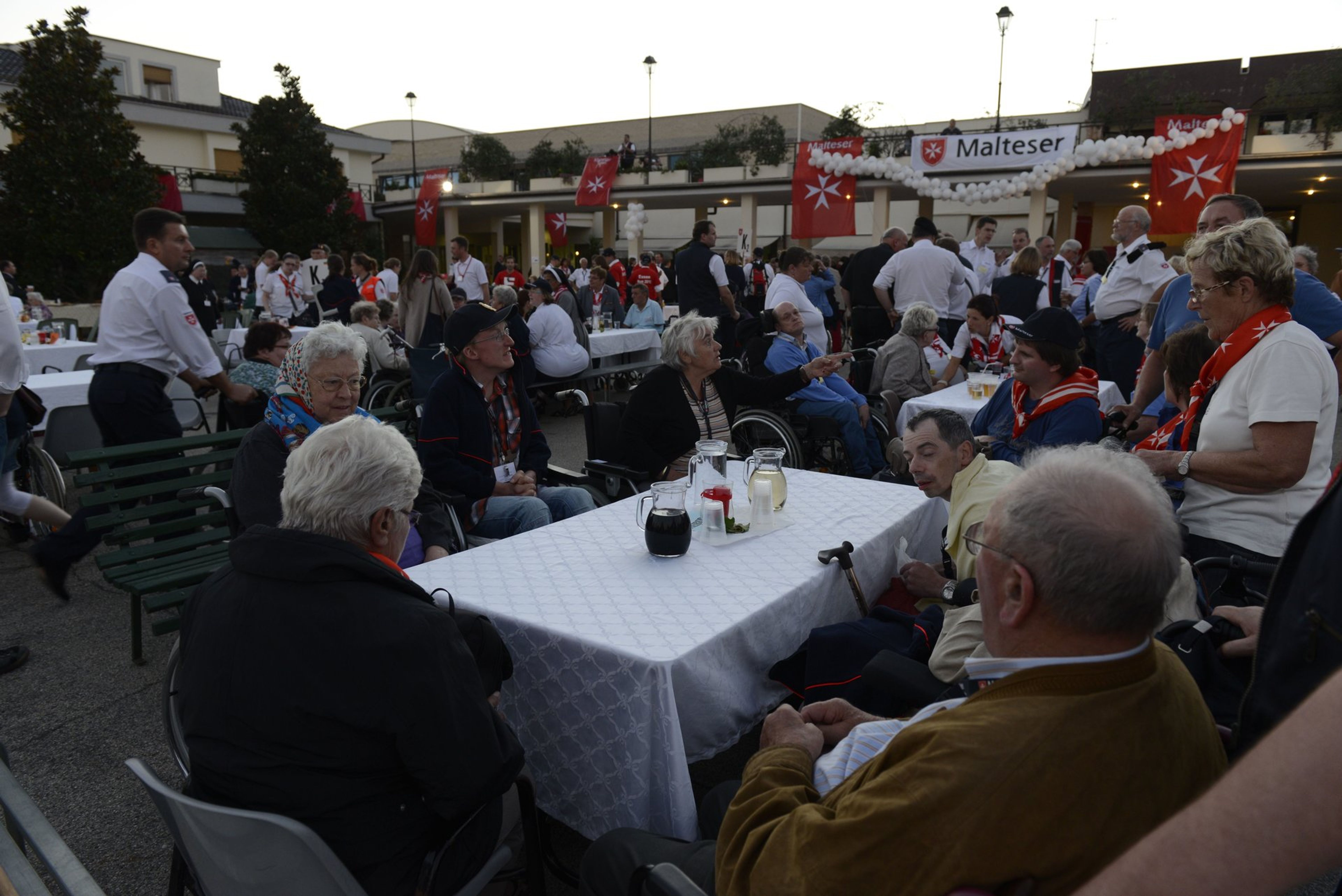 Das Pilgerhotel „Fraterna Domus“ beherbergte einen Großteil der Wallfahrer aus Deutschland. Für die traditionelle Abschlussfeier verwandelte sich der zentrale Platz in einen Festsaal unter freiem Himmel. Die Wallfahrtsleitung fand die richtigen Dankesworte, die sympathischen römischen Motorrad-Polizisten ernteten tosenden Applaus und dann tanzten die Rollstühle in der lauen italienischen Nacht.