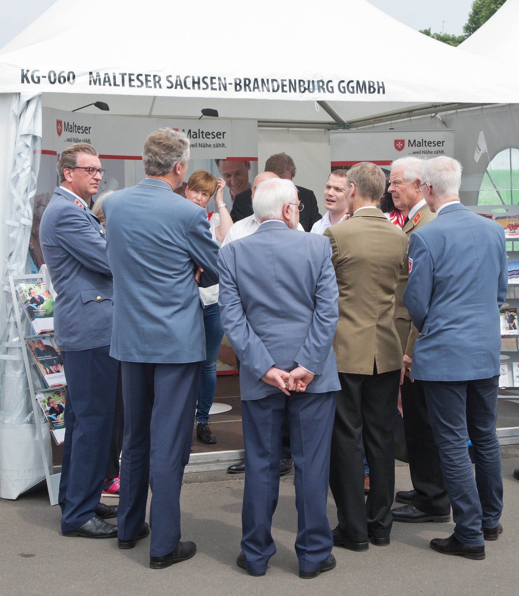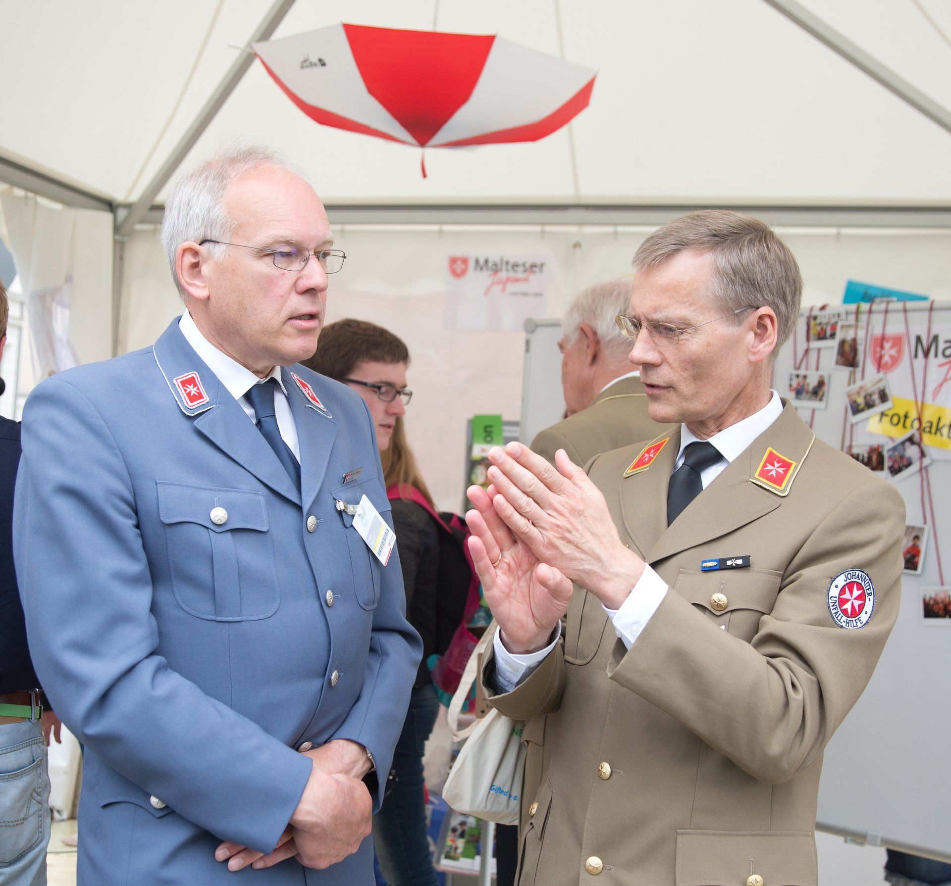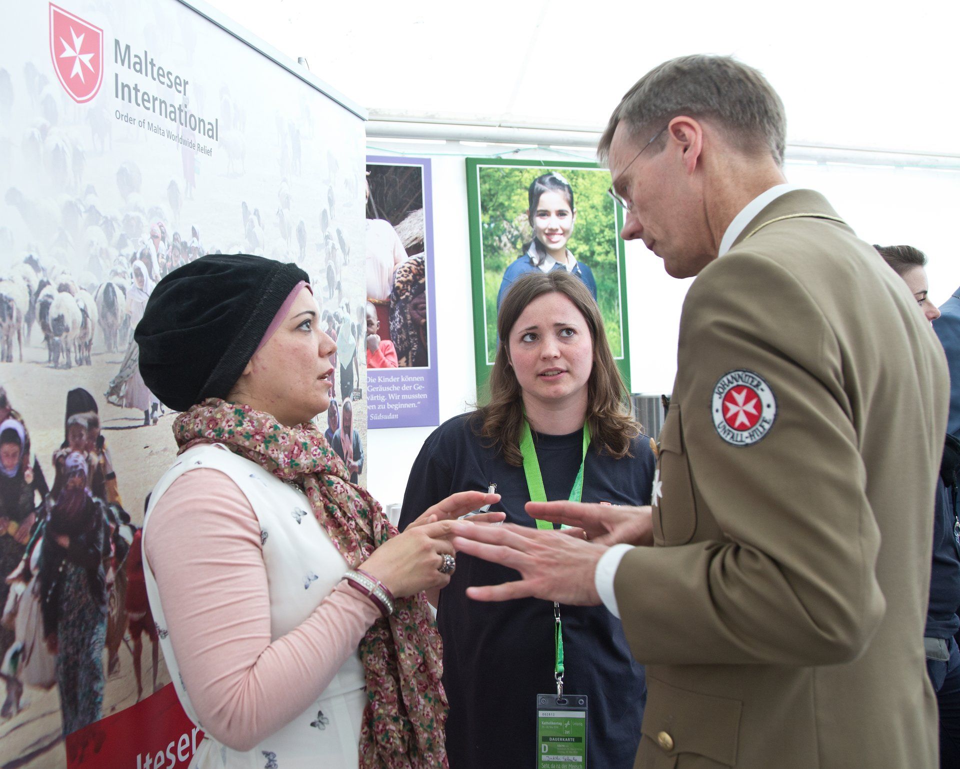 Traditionell trafen sich das Präsidium der Johanniter-Unfall-Hilfe und des Malteser Hilfsdienstes zu einem Rundgang über das Katholikentagsgeländes.