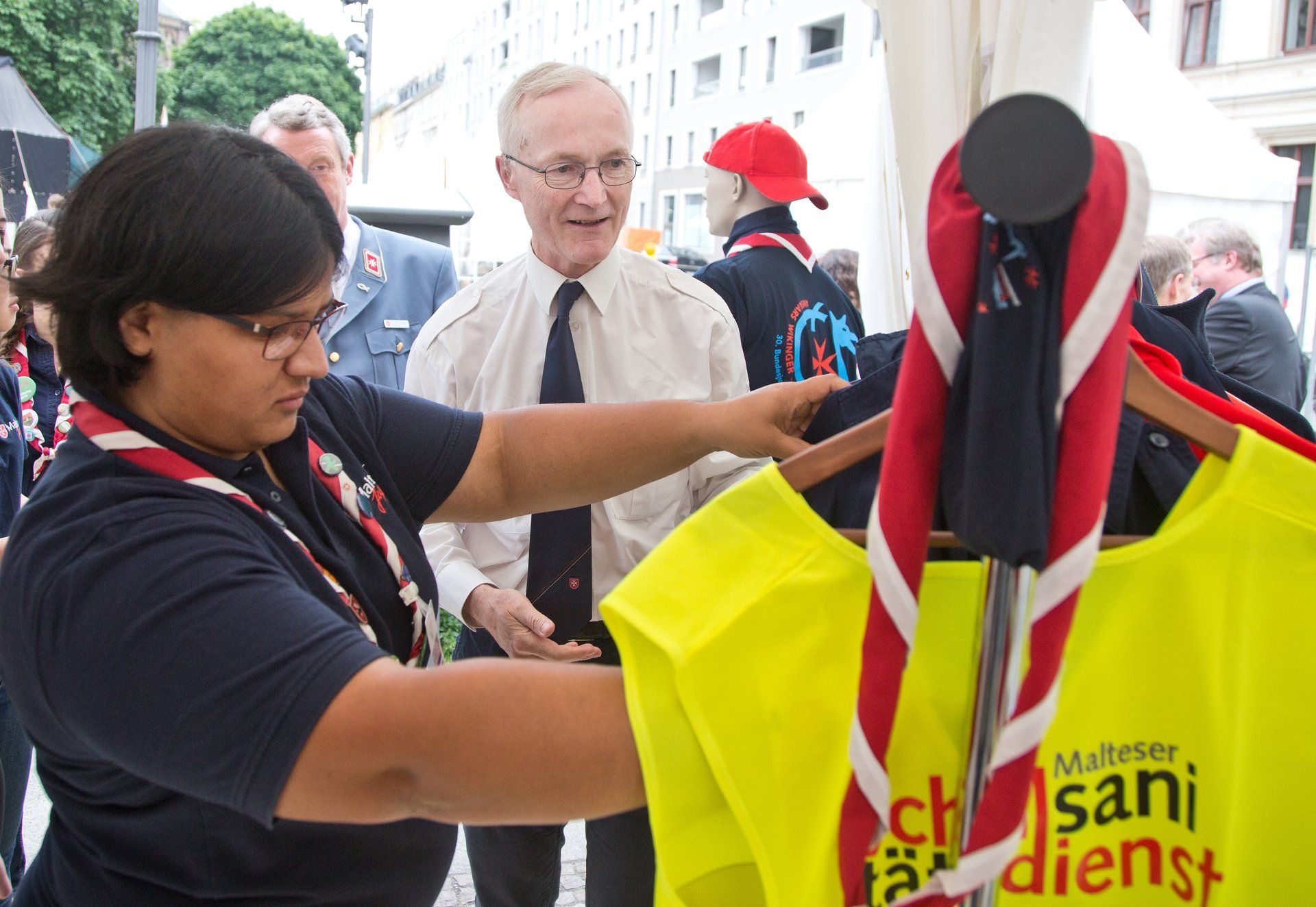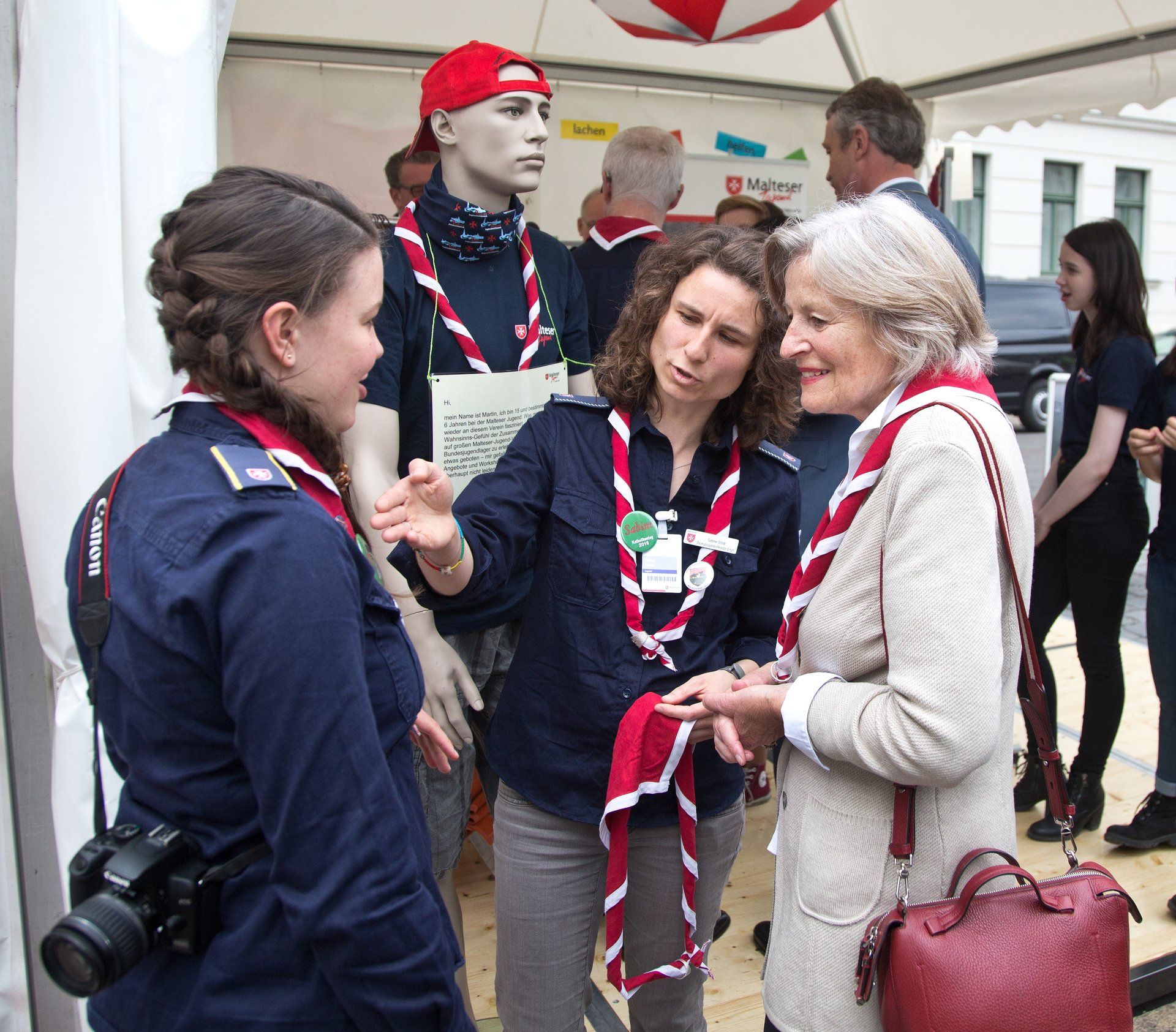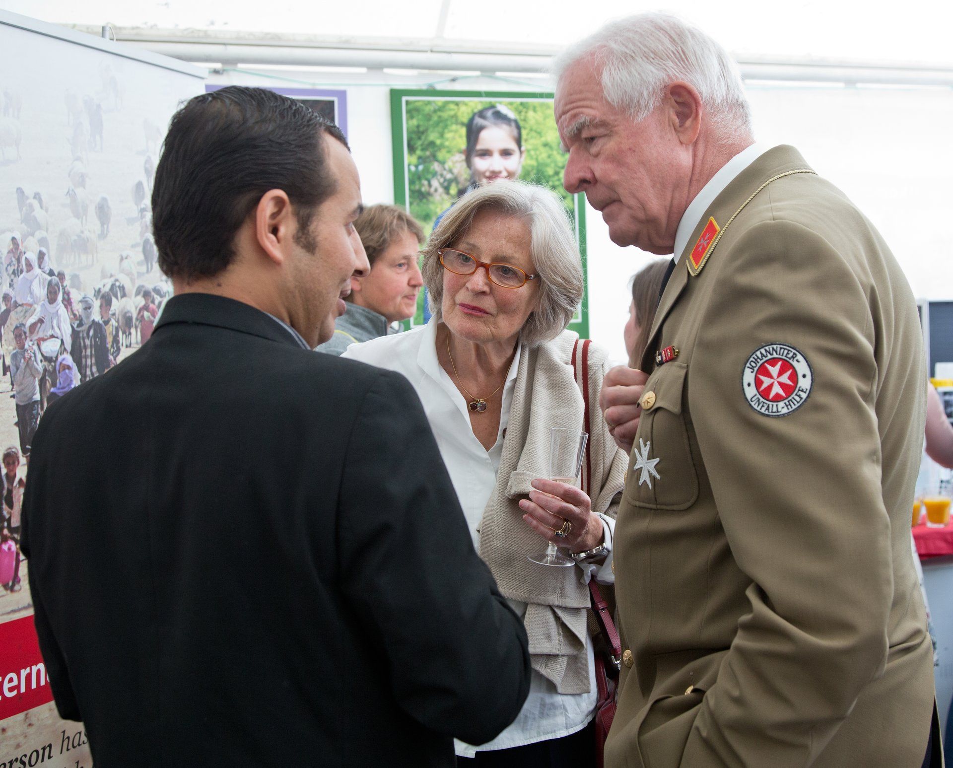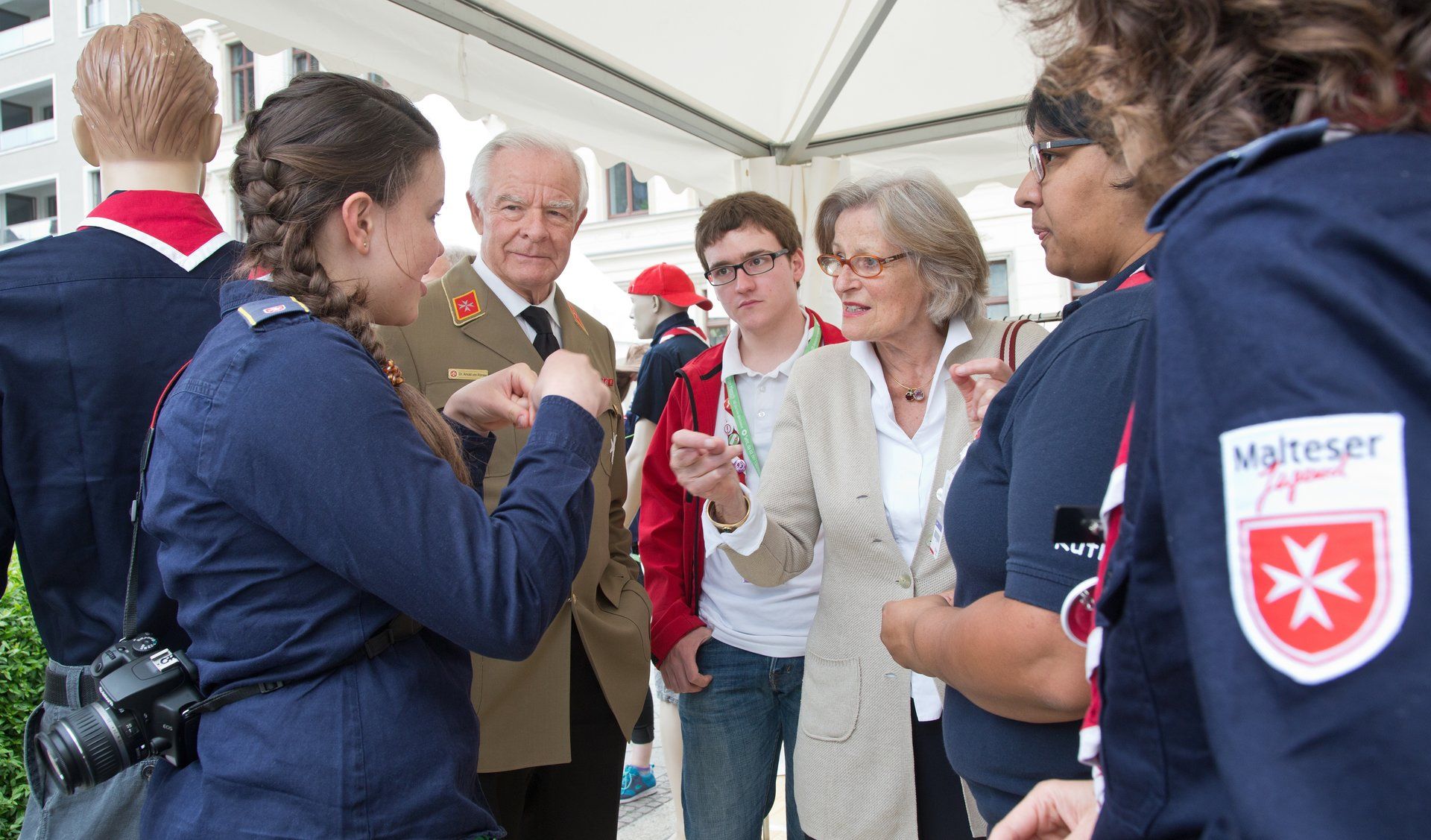 Traditionell trafen sich das Präsidium der Johanniter-Unfall-Hilfe und des Malteser Hilfsdienstes zu einem Rundgang über das Katholikentagsgeländes.