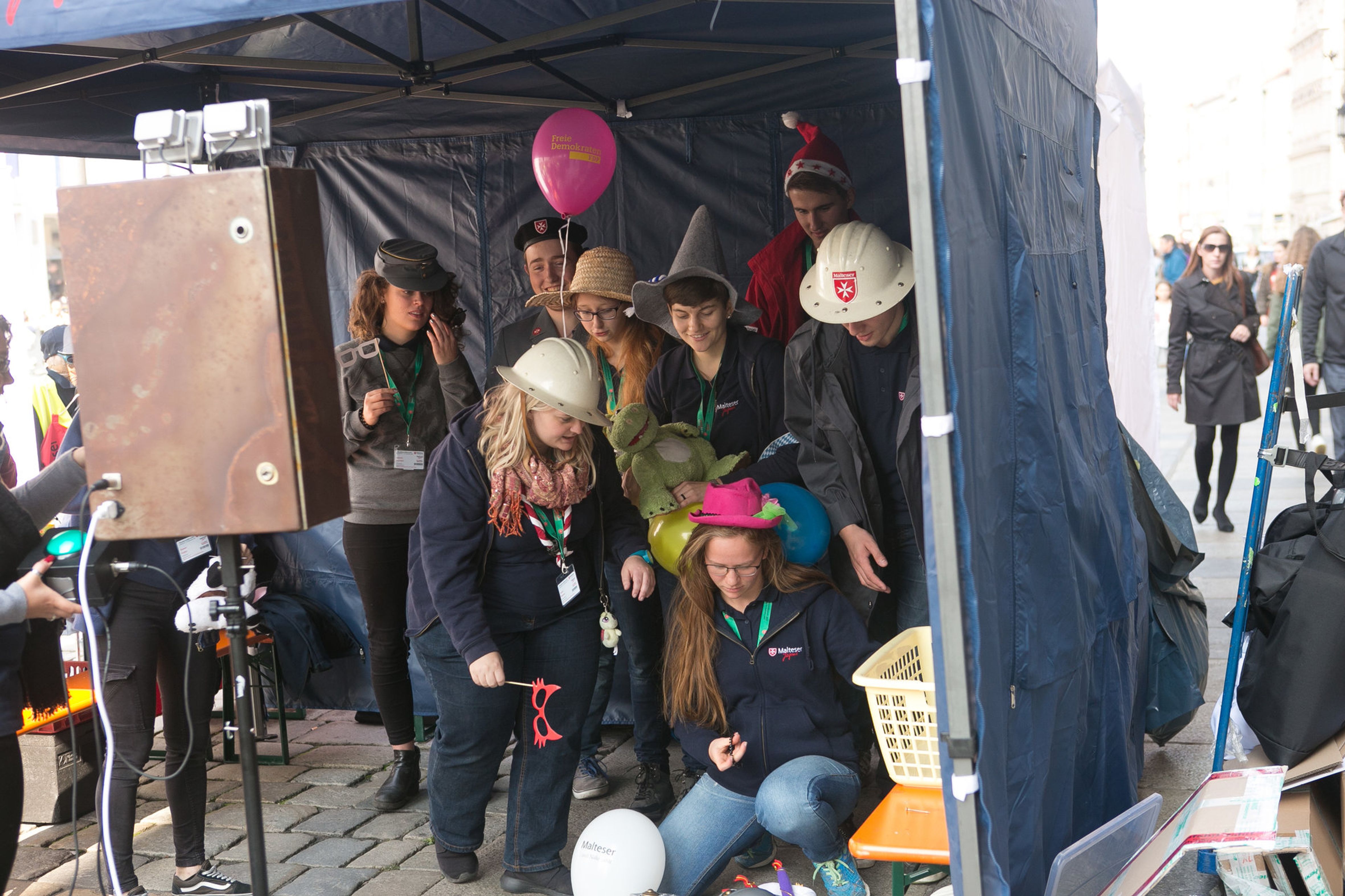 Für Erinnerungsschnappschüsse stand den Gruppen eine Fotobox im Ergoldinger Gymnasium und in der Fussgängerzone in Landshut-Downtown zur Verfügung.