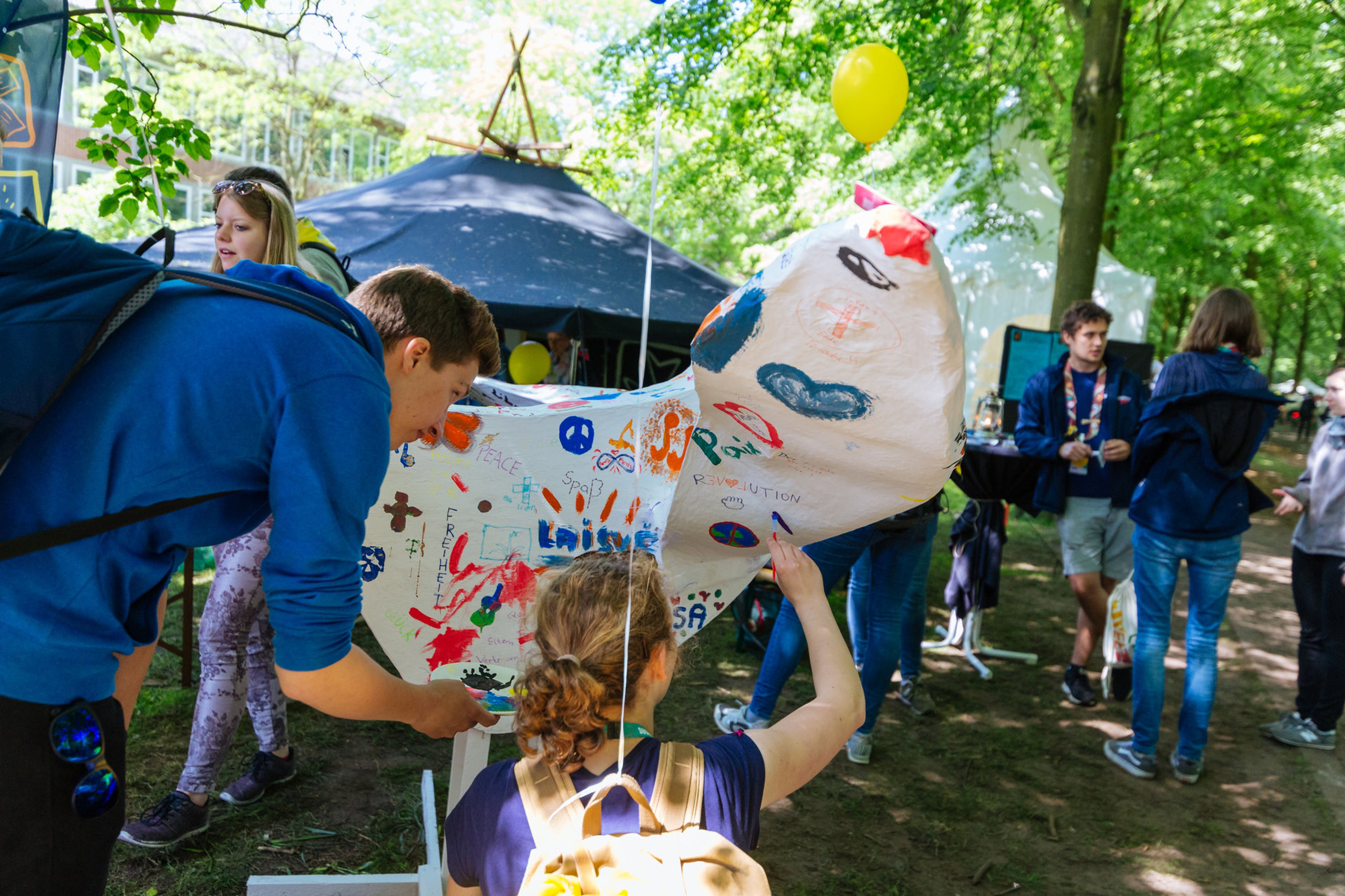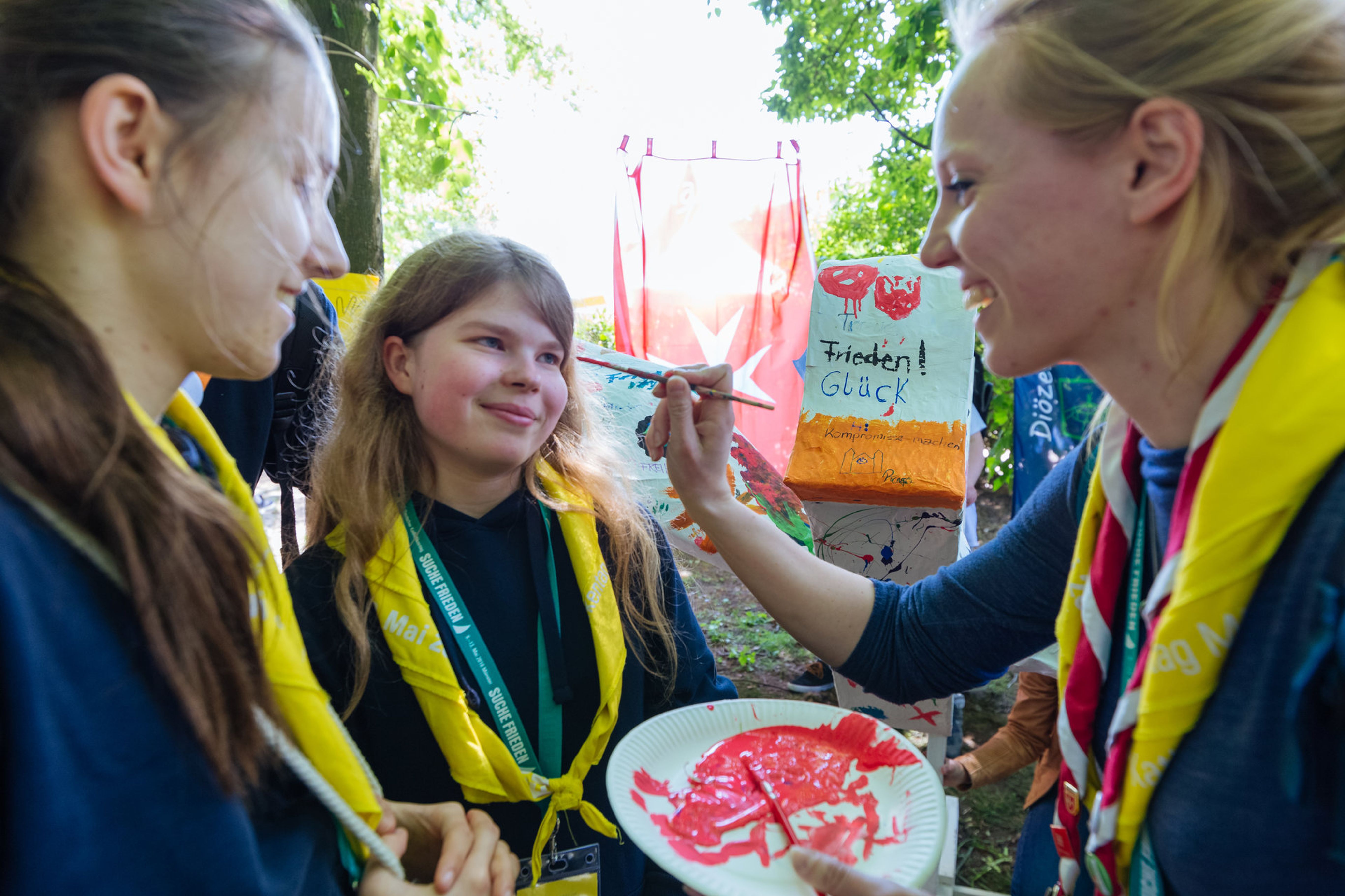 Am Stand der Malteser Jugend werden jugendgerechte Angebote zum Thema Frieden angeboten. Auf dem Programm stehen beispielsweise die Gestaltung einer Friedenstaube, eine Auszeit bei einer Fahrradtour und das Erkunden von Stadt und Katholikentag mit Hilfe einer Smartphone-Rallye.